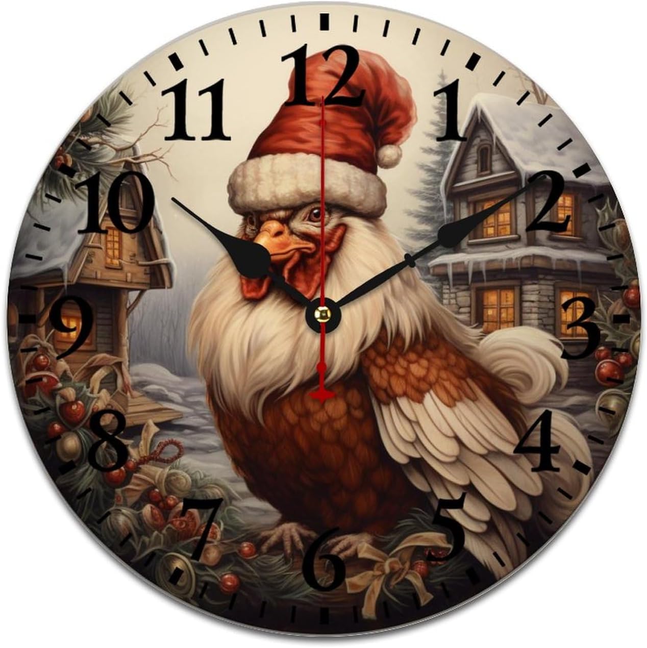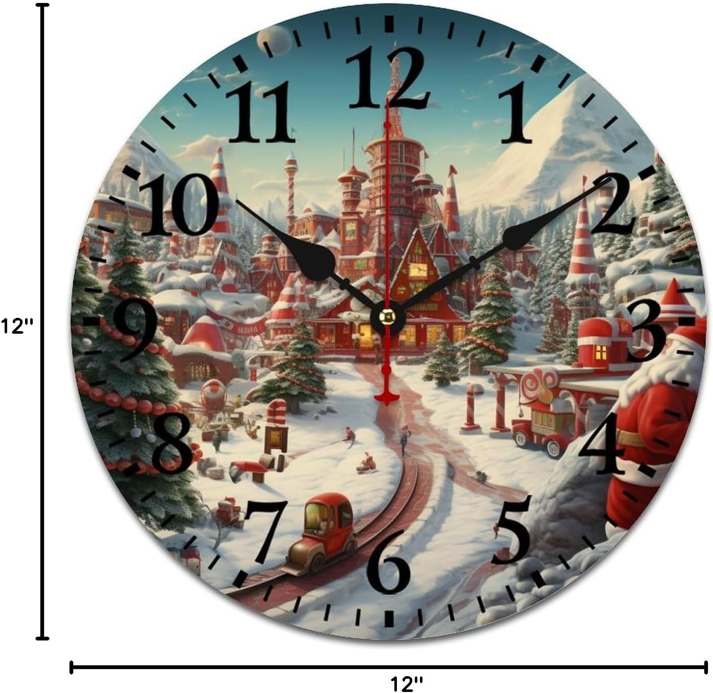 Christmas Holiday Kitchen Wall Clock 12 Inch Farmhouse Antique Silent Non Ticking Battery Operated Vintage Country Rustic Distressed Wood ClockLarge Number-Large numbers, easy to see from a distance or sideMetall Hands-The precise metal hands tell the time exactly, durableMetall Hands-The precise metal hands tell the time exactly, durableSuper Quiet-Quiet sweep second hand, no"TICK TOCK" to ensure a good sleepingBattery-Requires one AA battery (not included in the package)Easy to Hang-Back slot design offers easy installation, 1 non-track hook includedLarge decorative round wall clock is perfect for office ,living room, classroom, bedroom, bathroom.Please check it before usePlease check that the second hand is bent before use.All our products are strictly inspected,but this problem is unavoidable in the course of transportation.If the hands are curved, you can adjust them directly with your hands to keep them parallel.We apologize for the inconvenience.