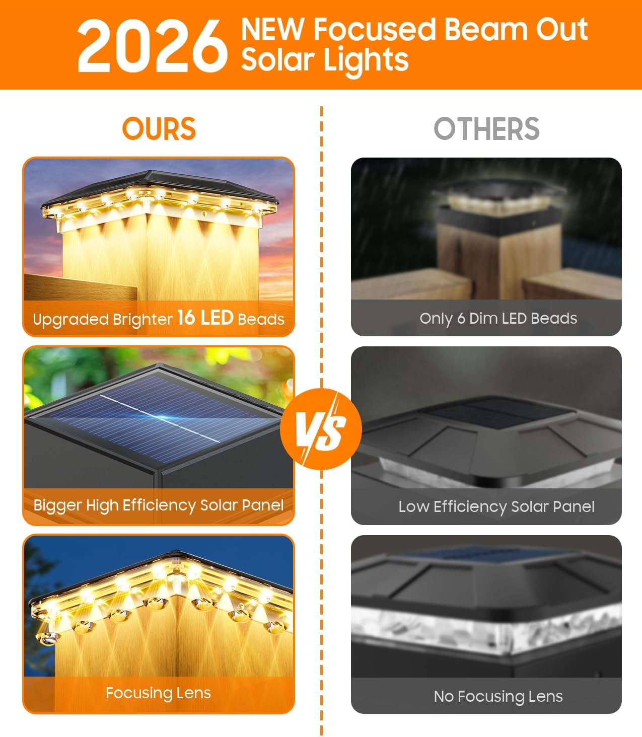| Other Special Features of the Product | 3 Lighting Modes, Focused Lens Design, Only for 4''x4'' Vinyl Post & 3.5''x3.5'' Wooden Post, 16 Brighter LED Beads, IP65 Waterproof, Each Product comes with 4 Fasteners |
