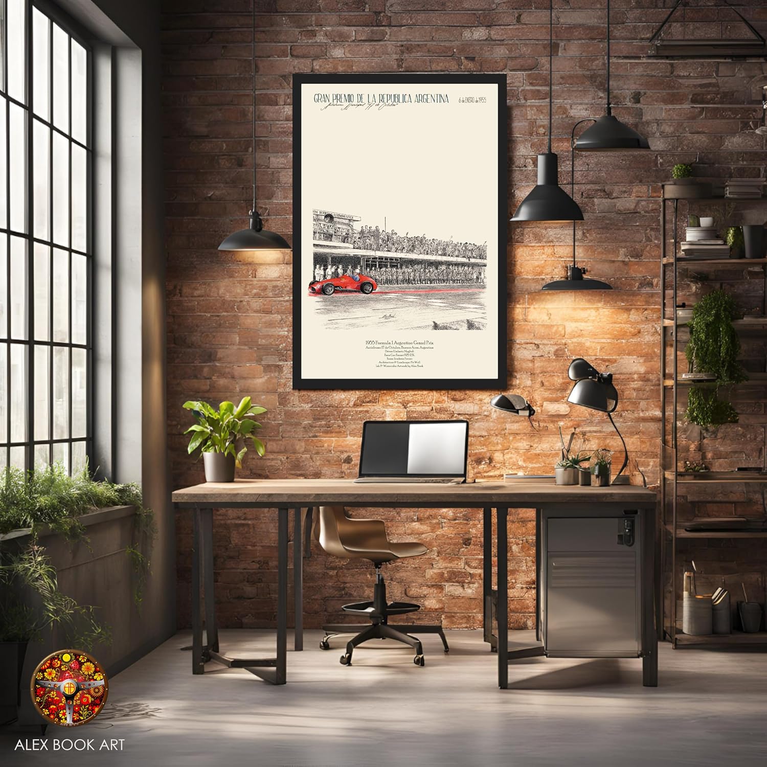 Art print by Alex Book Art featuring Umberto Maglioli in his Ferrari 625 during the 1955 Argentine Grand Prix at the Autódromo 17 de Octubre in Buenos Aires, this vintage-inspired artwork captures the essence of one of motorsport’s greatest eras. It offers a glimpse into the fierce racing world of the mid-20th century, where both man and machine were pushed to their limits. This high-quality giclée print is more than just a piece of decor—it’s a celebration of racing history. Printed on 175 gsm museum-grade matte paper, each piece uses pigmented archival inks to ensure rich, vibrant colors that won’t fade over time. The detailed brushwork and ink & watercolor style capture the action and intensity of the race, while preserving the authenticity of the era. Whether you’re a Formula 1 fan, a Ferrari enthusiast, or a lover of vintage racing, this artwork brings a piece of motorsport’s golden age right into your home. The unframed print gives you the flexibility to hang it as-is with tacks or double-sided tape, or to frame it to match your style and decor. Perfect for an office, living room, garage, or man cave, this vintage racing poster instantly elevates any space with its timeless appeal. Shipped safely in a thick triangle tube/box and hand-rolled in protective tissue paper, this art print will arrive in perfect condition, ready to be displayed. Whether it’s a gift for a friend or a new addition to your personal collection, this 1955 Argentine Grand Prix poster is a must-have for any racing enthusiast or collector of vintage memorabilia. Made-to-Order Artwork – Each poster is printed individually after purchase; returns are accepted only if the item arrives damaged or with a printing defect, and photo verification may be required. Color Variation Notice – Colors may vary slightly due to monitor settings and the printing process. Listing Image, Size & Production Notice – Listing images are for illustration purposes only; please refer to the size chart shown in the listing images to review the available art print dimensions. Frames shown in mockups are not included unless stated otherwise, and a short production period is required before shipment as each print is produced after the order is placed.