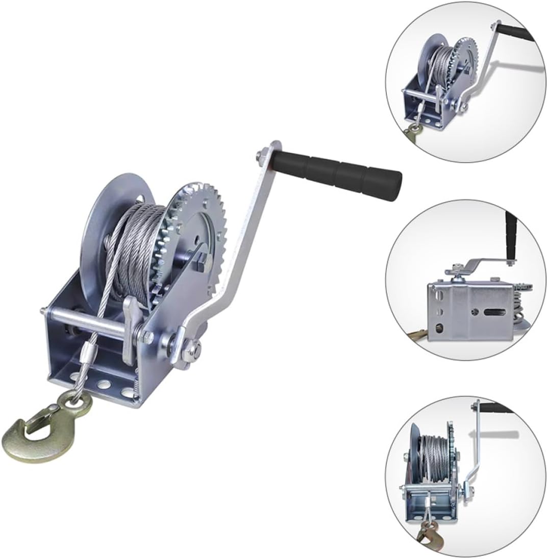 Package List 1 x hand winch 1 x steel wire rope (10m) Characteristics -Material: Steel Boat Towing Winch. -Wire rope diameter: about 4 mm/0.16 inch Trailer Winch. -Cable length: about 10m/32.8ft Hauling Cable for Car. -Pull force: 1500 kg Manual Winches. -Color: Silver Car Winch. -Size: About 19.00X13.50X11.00cm/7.47X5.31X4.32inch Heavy. -Gear ratio: 4.1:1 Wire Rope Handle Crank Winch. -Breaking strength: about 1500kg Hand Crank Winch. -Easy to use, simple to operate, not easy to break, and safer to use Car Hauling Wire Cable. -It is made of steel material, strong and durable, not easy to deform or damage Boat Trailer Winch. -The design is scientific, the structure is excellent, and it has excellent carrying capacity and can carry heavy objects Winch with Wire Rope. -Manufactured with excellent craftsmanship, it can provide excellent load lifting and traction Hauling Cable for Vehicle. -Professional and practical, can be widely used in boats, trailers, etc., will be your choice of towing tools Hauling Cable.Goods InformationHand Winch This is a great manual winch that will serve you well.Hauling Cable for Vehicle Reasonable design, convenient and practical, safer and more labor-saving.Hand Crank Winch Are you looking for a professional, practical and manual winch? Our products will be your choice.Car Hauling Wire Cable Made of craftsmanship and steel, it has excellent durability and practicality