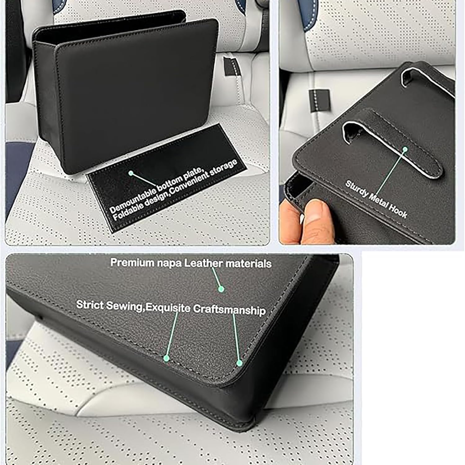 Specification:Name: Car Trash Can.Color: Black/Beige/Brown/Wine Red.Material: Leather.Size: Approx 15.53 inch ×8 inch × 2.75inch.Applicable: Most vehicles.Features:1. The car bin helps you remove any spills, crumbs or debris quickly and efficiently, say goodbye to cluttered car interior ring mirrors and keep your vehicle clean and organized.2. The car collapsible bin is installed with inline suspension, so you don't have to worry about it falling or tipping over on a bumpy drive.3. The car mini bin features a built-in base plate that you can choose to take out or put inside.4. Car Storage Container is needed to install this case. Just hang it on the side of the door or in the back seat pocket and it will be stable while traveling.Warm Tip:1. Please allow slight measurement deviation due to manual measurement.2. Due to different monitors and light effects, the actual color of the item may be slightly different from the color shown in the picture.Service:If you have any problem, please contact us first, we will help you solve the problem.