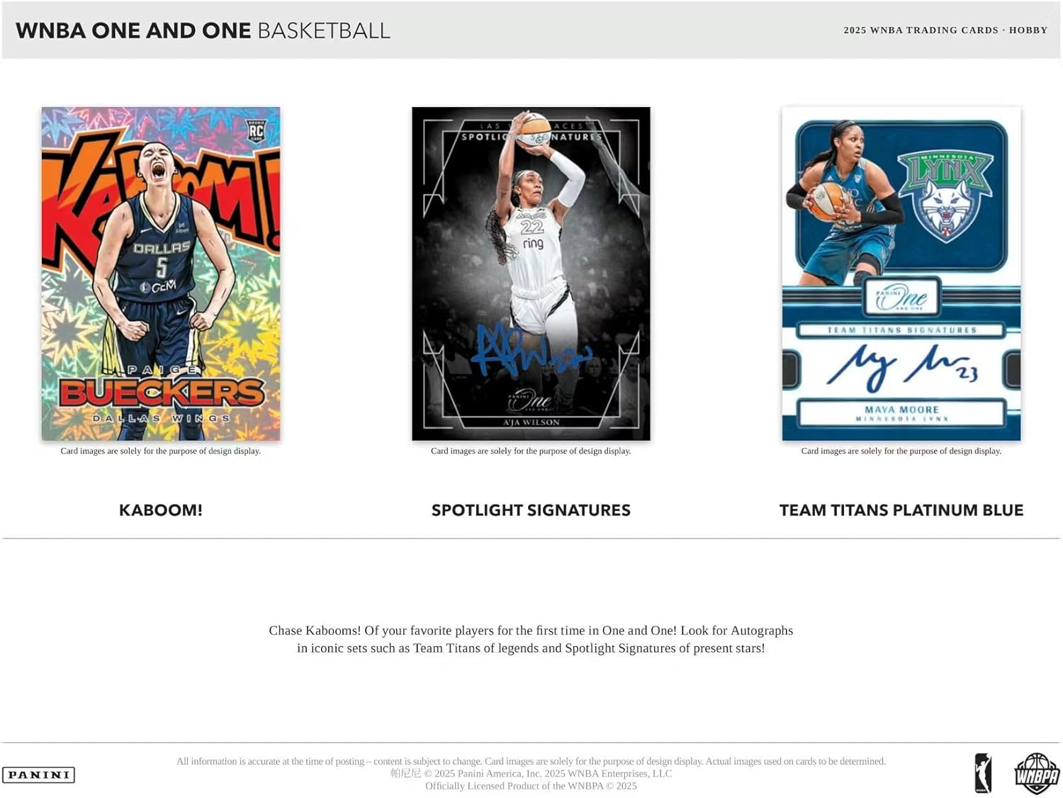 | Set Name | 2025 Panini One and One WNBA Basketball Hobby |
