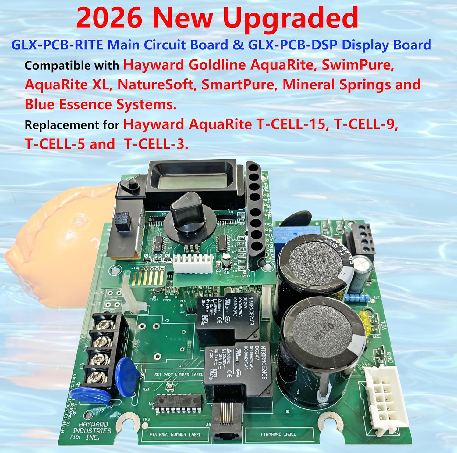 2026 New Upgraded GLX-PCB-RITE Main Circuit Board & GLX-PCB-DSP Display Board,Fits The Hayward/Goldline Aqua Rite Saltwater Chlorinator,for Pool Chlorinators Replacement,Hayward aquarite Circuit Board