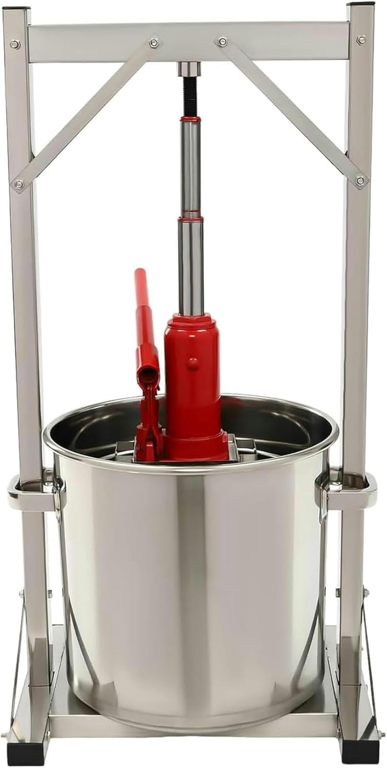 Details the details of the lateral output: it is installation free and allows easy download to save cleaning time. Plastic plastic: makes the barrel more stable and does not stagger with welding technology: the handles treated with the processWelding are not easy to fall, which is beautiful and practical. Return valve: It presents a knob design that makes the cat reduction faster and easier. SPECIFICATION MATERIAL: 201 Stainless steel, 304 stainless steel, stainless steel,Galvanized iron, iron, plastic process: Welding installation Installation Type: Independent set required: Yes Pressure efficiency: approximately 100-150 kg/220-330 lb/h Barril capacity: 22l/5.8gal gross barrel: 5.9 kg/13 lbs of frame and cat Gross weight: 11 kg/24.2 lbs Total size: 38 × 32 × 78 cm/14.9 × 12.5 × 30 inches barrel package size: 38 × 34 × 40cm/14.9 × 13.3 × 15.7in Marcoand cat and cat cat of the package: 70 × 32 × 12cm/27.5 × 12.5 × 4.7in Package included 2* Pressure Barrel 1* Operational pressure completely before using. And pay special attention to the security instructions included. 2.We send the barrel and the cat separately to protect the damage product during transport. Wait patiently so that all the pieces arrive. 3.The hydraulic press uses a connector to press, and is suitable for pressing loose elements such as oil residues that remain after high temperature pressure, honey, grapes, etc.You cannot press peanuts, sesame seeds and other hard materials. This cat is only for vertical use, not sideways or vice versa. 4.To inhibit the corrosion of the pieces, it must regularly lubricate the stainless steel of non -food contact steel with a food degree fat (not included) .5.To guarantee the normal use of the connector, keep the cat piston rod clean and lubricated
