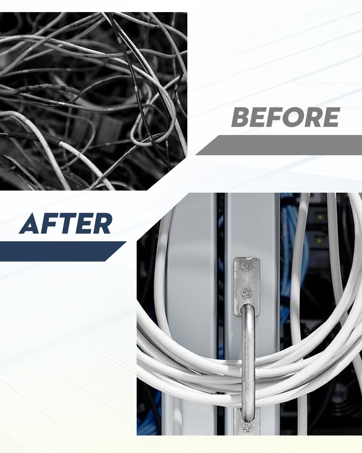Features: High-quality Aluminum: Made of high-quality aluminum, resistant to corrosion and oxidation, for durability. Versatile Uses: For cable organization and cord management, suitable for commercial and residential use. Reduces Clutter: Minimizes tangling and accumulation of wires, effectively organizing messy wires. Easy Installation: Fixes easily with screws in any location, plug and play. Pack of 25: You will receive 25 3-inch aluminum D-shaped cable organizers for easy replacement.