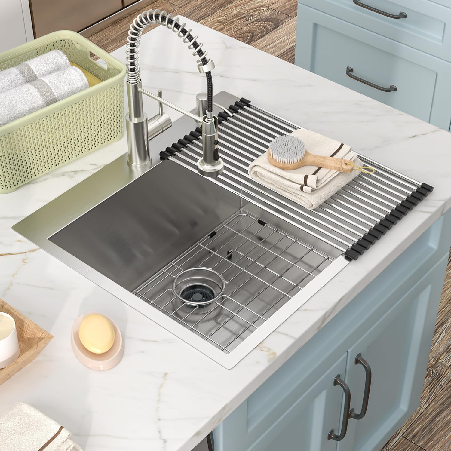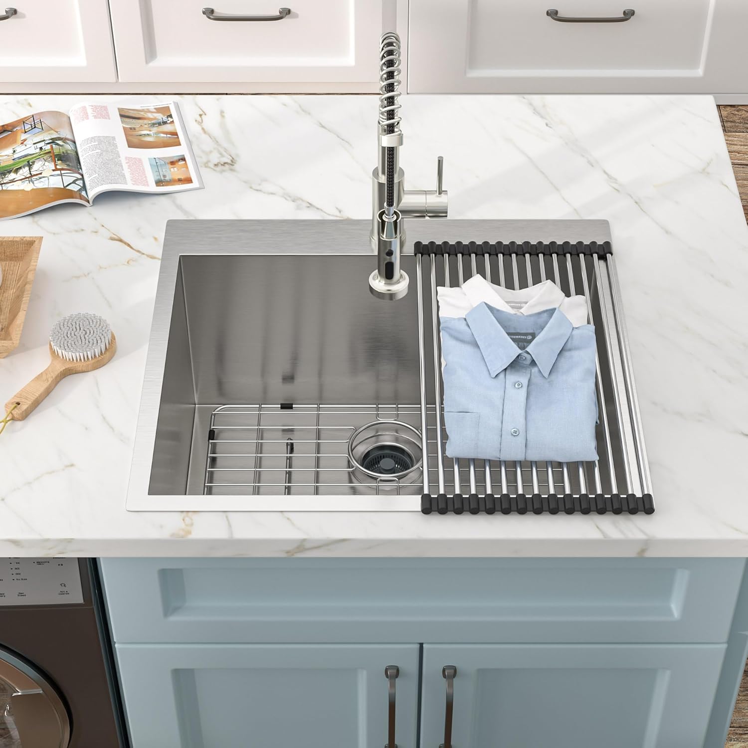 | Included Components | 25 inch single bowl laundry utility sink, bottom rinse grid, faucet, roll up drying rack |