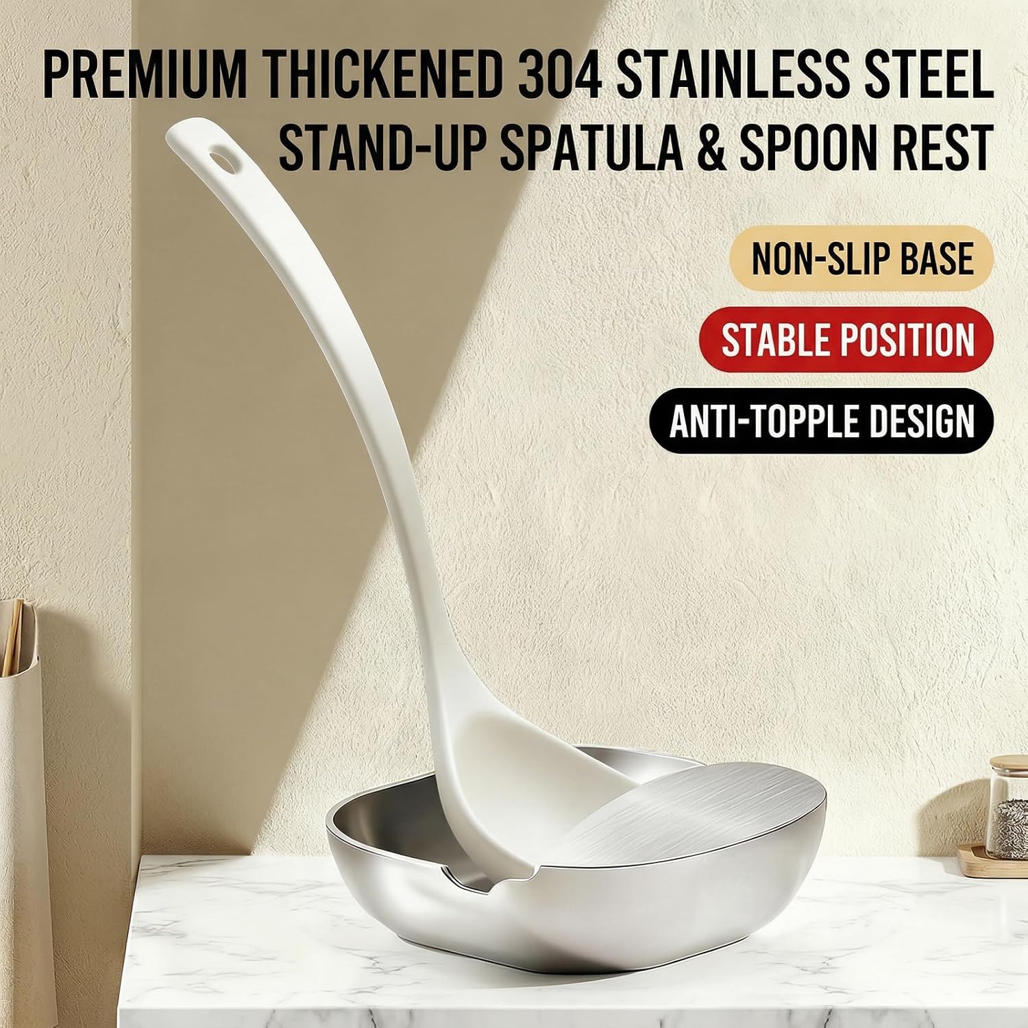 Product Description Upgrade your kitchen experience! This 304 stainless steel ladle rack is a versatile must-have for your kitchen, not only keeping your countertop tidy but also adding a touch of modern elegance to your cooking. Its unique design allows you to easily store a variety of cookware while preventing oil stains and liquid drips, making it ideal for every home cook, chef, or food enthusiast. Material: Food-Grade 304 Stainless Steel Finish: Elegant Brushed Metal Length:4.72 inches Width: 4.33 inches Height:1.57 inches Premium 304 SS Rust-resistant & Durable Dishwasher Safe Effortless Cleaning Packing list: 1PCS* PureBox Notes: 1. Due to manual measurement, please allow an error of 0-1cm. Please make sure you don’t mind before bidding. 2.Due to varying monitor displays, the picture might not show the actual color of the item. Thank you!