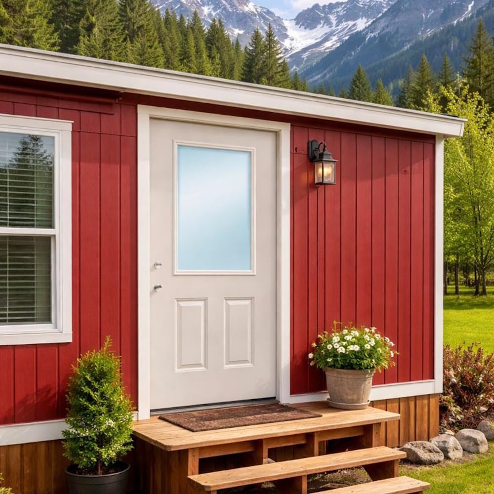 Featuring a white, wood-grain texture, this fiberglass door made specifically for mobile homes can be stained or painted. Pre-hung in 4-9/16” primed jambs and includes weather-stripping and thermal break sill. Polystyrene foam core insulated and double-bored. Does not include brickmould.