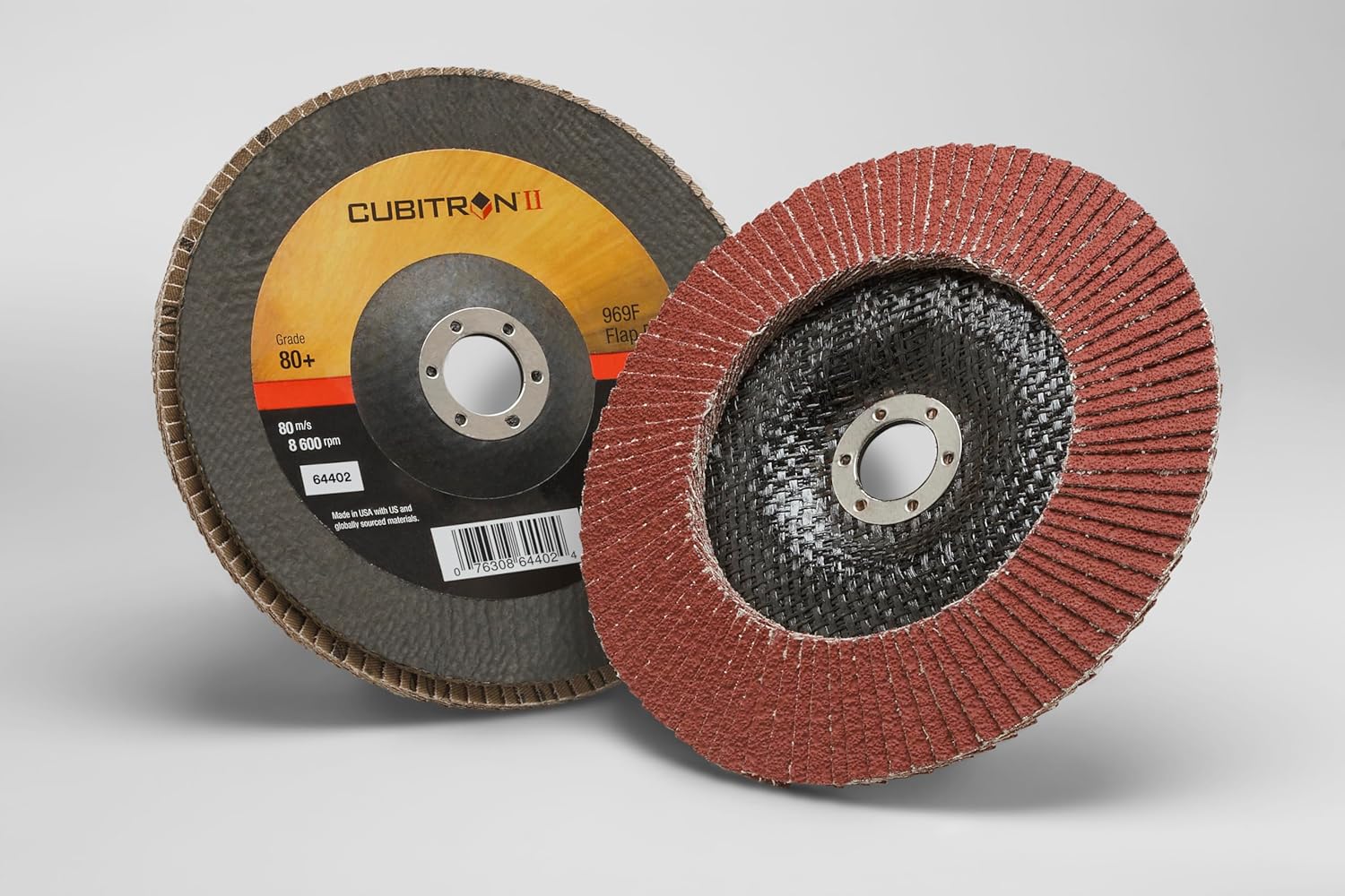 3M Cubitron ll Flap Disc 969F is the ideal choice for medium to high-pressure applications like beveling, weld removal and edge deburring. By combining a durable polyester backing with 3M Precision-Shaped Grain, this long-lasting flap disc delivers a consistent, fast cut on a variety of metals while providing a smooth finish.