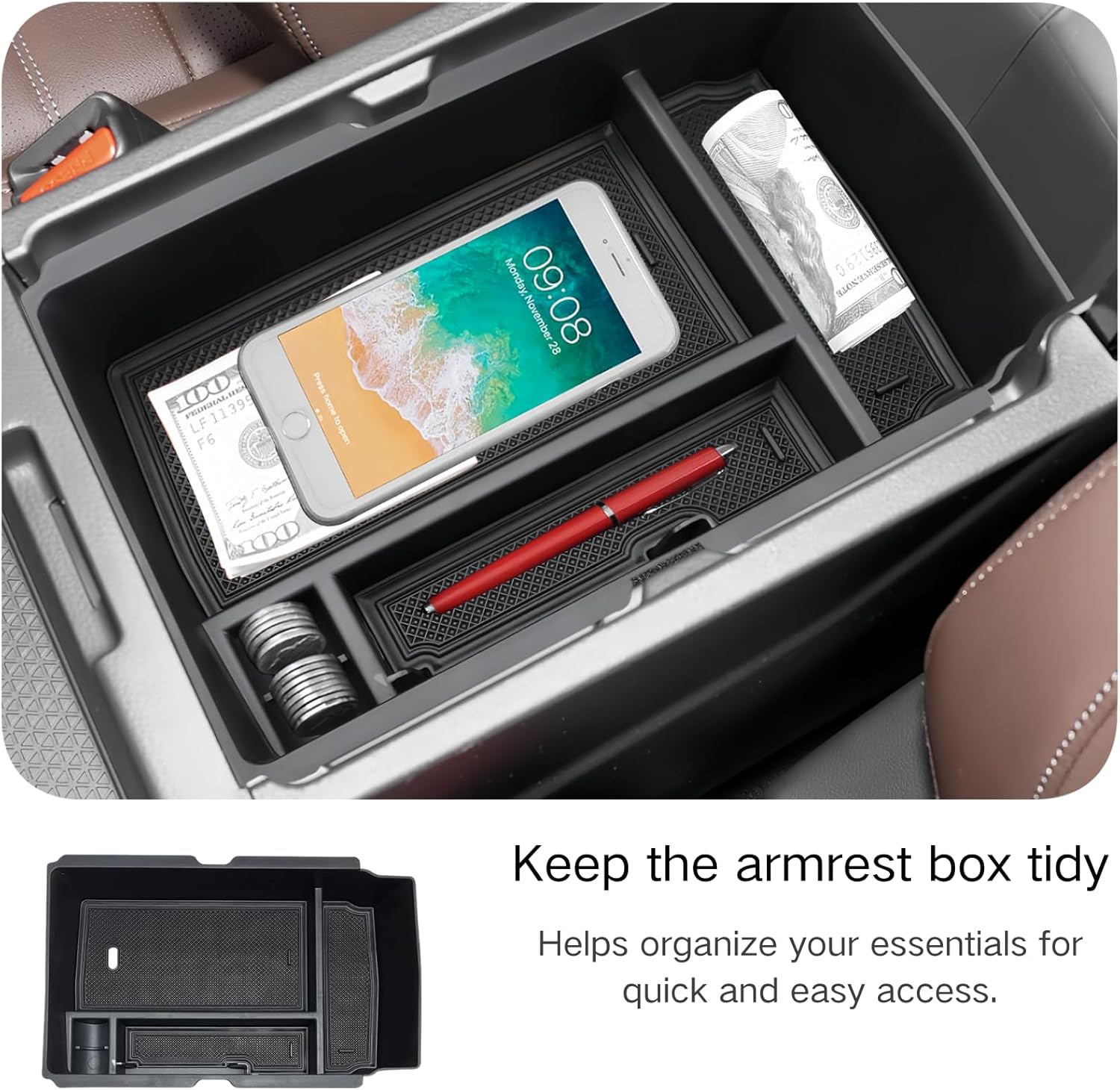 | Specific Uses For Product | Increase the car's center console storage space to provide easy organization of small items for the driver and passengers. |