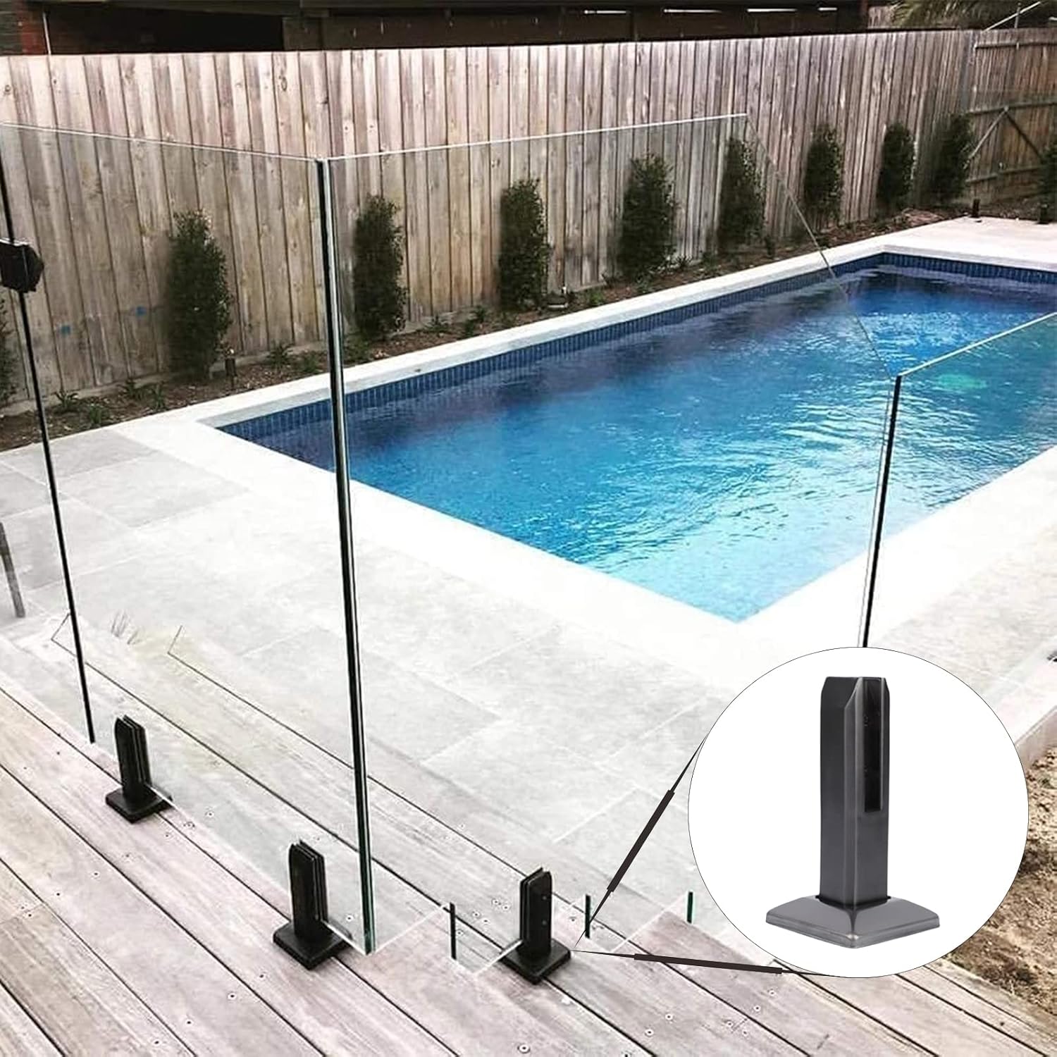 This is a very modern stainless steel post clamp that brings fashion and safety to your glass swimming pool,glass garden,balustrade,glass staircase frame,making your glass more invisible, letting you feel more comfortable space,and leaving you more beauty of vision.Specification:color: bright blackMaterial: Stainless steelSize: 160mm / 200mmPacking list:Glass clip X1Expansion screw X4Decorative cover X1Gasket X1Note: This product is suitable for 10mm~12mm or 3/8"~1/2" tempered glass.