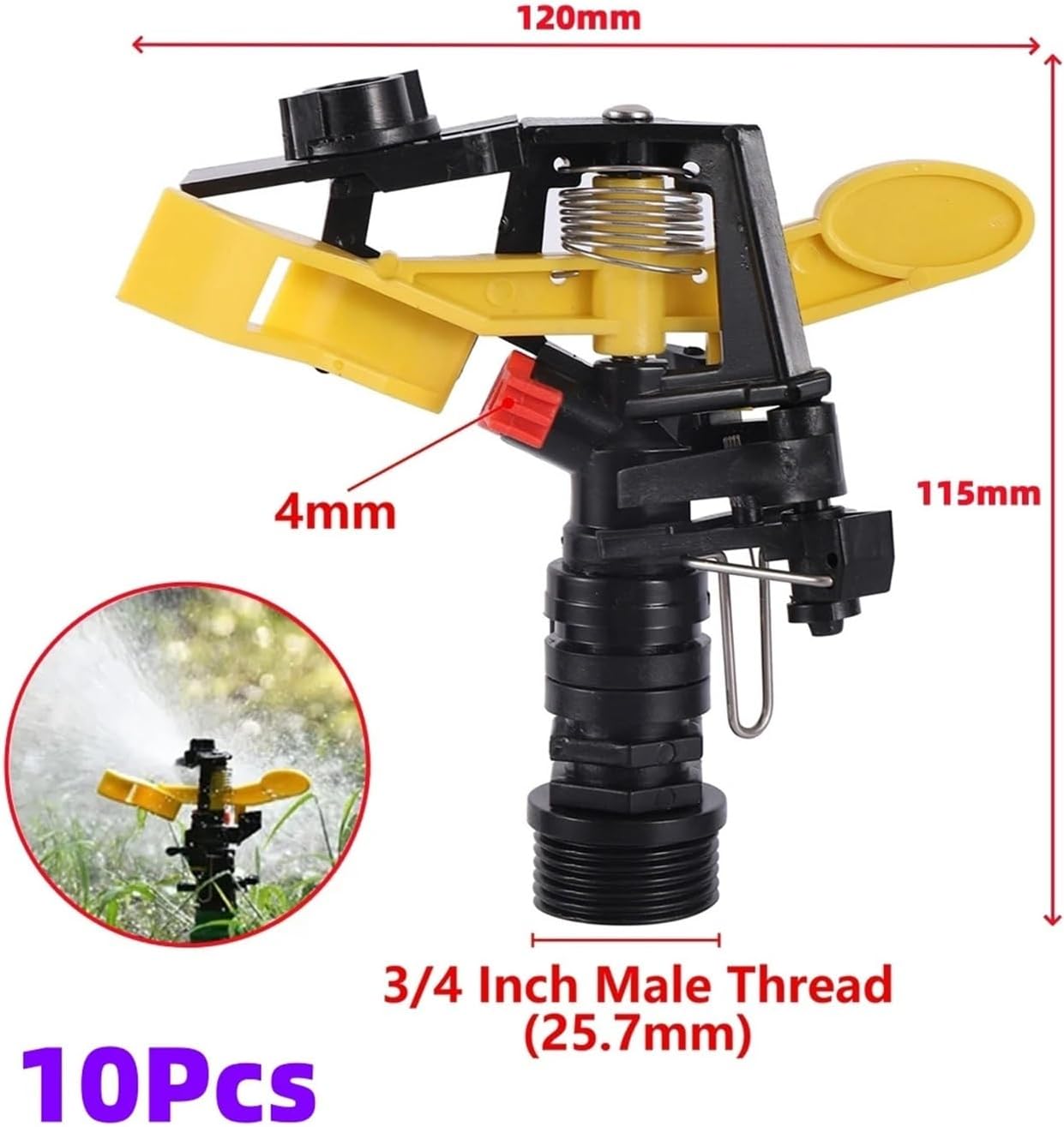 Color : Yellow + BlackSize : 120 x 115mmWater Consumption : 0.3~1.3 m³/hSpray Range : Diameter approx. 10~20m