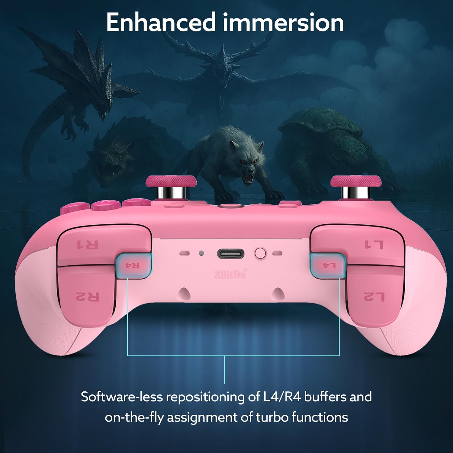 8Bitdo Ultimate 2C Bluetooth Controller for Switch/Switch 2 - Wireless Gaming Controller with Hall Effect Joysticks, 6-Axis Motion Control, Remappable L4/R4 Bumpers & Turbo Function(Pink)