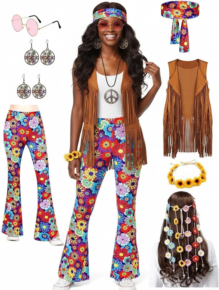 | Included Components | Accessories - necklace, earrings, flower crown, floral headband, chamomile headband, Glasses, Headband, Pants, Vest |