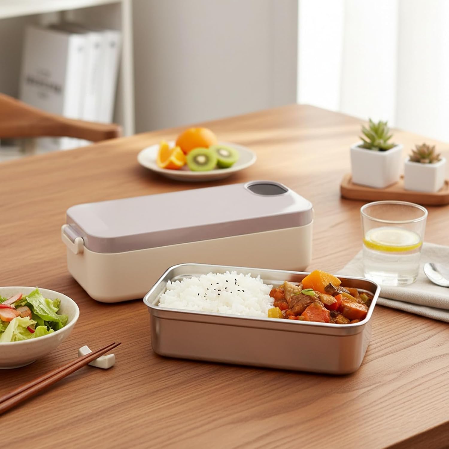 The cordless lunch box is a rechargeable food featuring a durable stainless steel container, for enjoying your meals on the go. This portable lunch box is an companion for s, professionals, and anyone seeking a convenient meal prep solution. Whether you're commuting to work, traveling, or attending classes, this lunch box offers the ultimate in functionality and ease of use. Its cordless design ensures effortless portability, allowing you to carry it wherever you need without hassle.SpecificationProduct name: heated lunch box: 304 stainless steel + ABS + electronic componentsColor options: black, pinkProduct weight: 670gLunch box capacity: 900mlBattery capacity: 7200mAh / direct -in modelProduct dimensions: approximately 26x2x7cm / 0.24x4.72x2.76 Pack List:Heated lunch box xUSB charging cable xInstruction manual xte:Please be aware that the item color may vary slightly from the pictures due to different lighting and screen settings.Allow for a -2cm size difference due to manual measurements.This heated lunch box not only keeps your meals warm but also promotes healthy eating habits by allowing you to prepare homemade food easily. Its sleek design and vibrant colors e it a stylish choice for anyone. Enjoy hot, nutritious meals anytime and anywhere with our user-friendly heated lunch box.