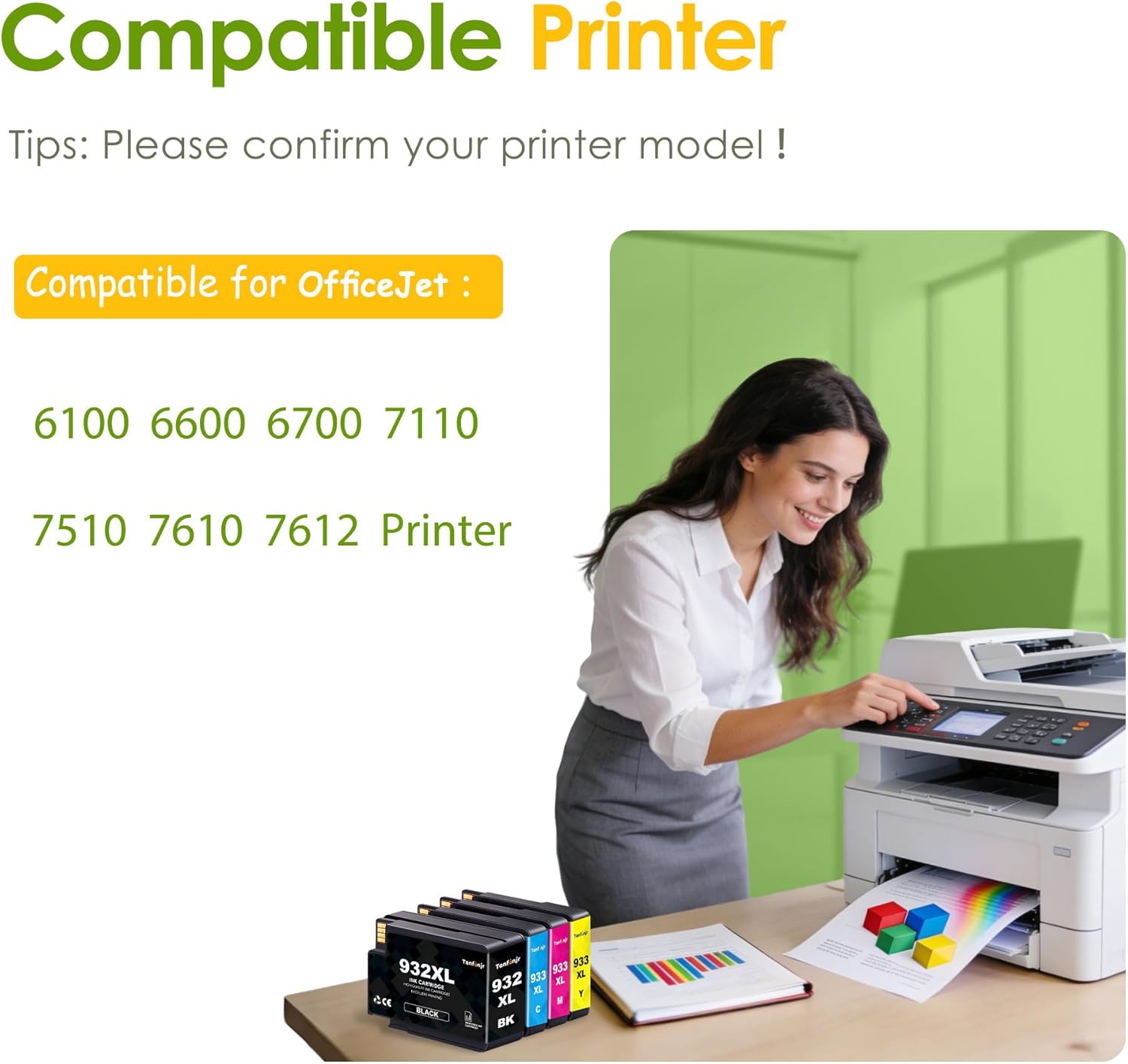 | Compatible Devices | 932 xl Black Magenta Cyan Yellow ink cartridges for hp printers, For hp 932xl 933xl 932 ink cartridges for hp printers 6100 6600 6700 7110 7510 7610 7612 Printer, for hp 932 933 xl ink cartridges combo, for hp printers that use 932 and 933 ink |