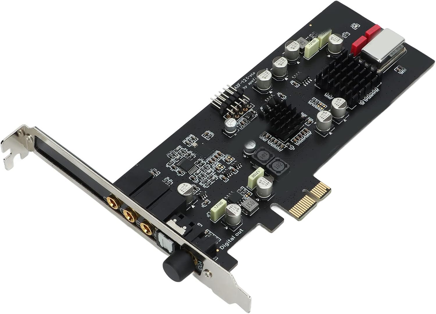 1. Clear Sound Quality: Using high performance audio processing chip, support ASIO driver, excellent sound quality, give you a good sound experience.2. Audio Format: The sound card has a built in chip that supports 24bit, 96khz high definition audio format. Support 2.0 audio and headphones, support 2.1 audio, support 2.0 amplifier and decoder.3. Compatibility: Support the use of headphone and speaker control software on the sound card at the same time, support digital audio, digital power amplifier, digital decoder.4. Support System: Support for Windows 7 8 10 11 system, support free driver, support audio interface on the front panel of desktop computer case.5. Multipurpose: Audio sound card has multi uses, suitable for gamers, DJs, good sound quality music, live broadcasting and singing, decoding sound card and so on.Spec:Item Type: Sound CardMaterial: PCBUsage: Suitable for gamers, DJs, HIFI music, live singing, decoding sound cardSupport System: For Windows 7 8 10 11Audio Support: 2.0, 2.1Signal To Noise Ratio: 113dBHarmonic Distortion:packing list:1 x Sound Card4 x Washer2 x Screw1 x ManualNotice:1. Do not place the product in an environment that is too humid and high temperature!2. Please supply power according to the voltage used. Using other voltages may cause fire and product damage!