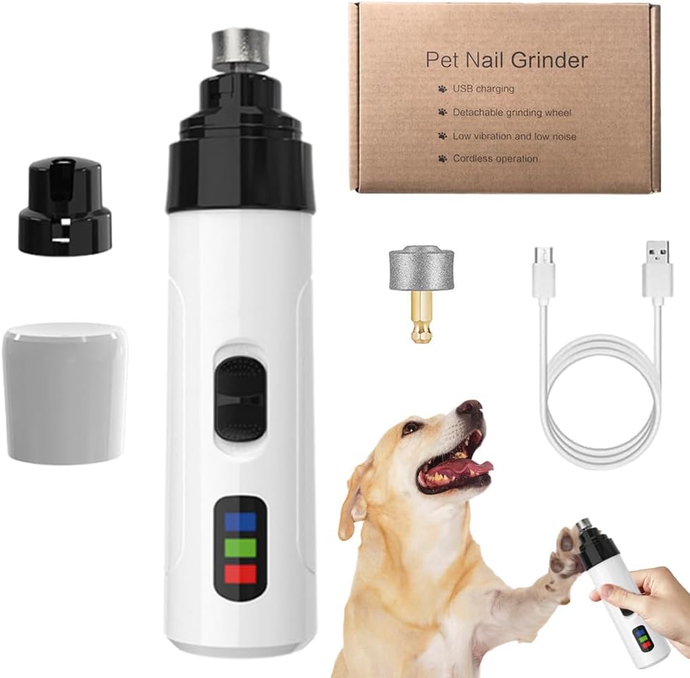 Specifications:Name: Dog Nail GrinderMaterial: ABSColor: WhiteGear: 2 gearsSpeed: 7000 in the first gear, 8000 in the second gearBattery capacity: 800 mAhCharging time: about 1.5 hoursBattery life: about 8 hoursCharging method: USBSound decibel: about 40-50dbGrinding wheel type: replaceable grinding headWeight of a single grinding head: 8gPackage Includes:1 Pcs * Dog Nail Grinder1/2 Pcs * Grinding Head1 Pcs * USB Cable1 Pcs * Manual