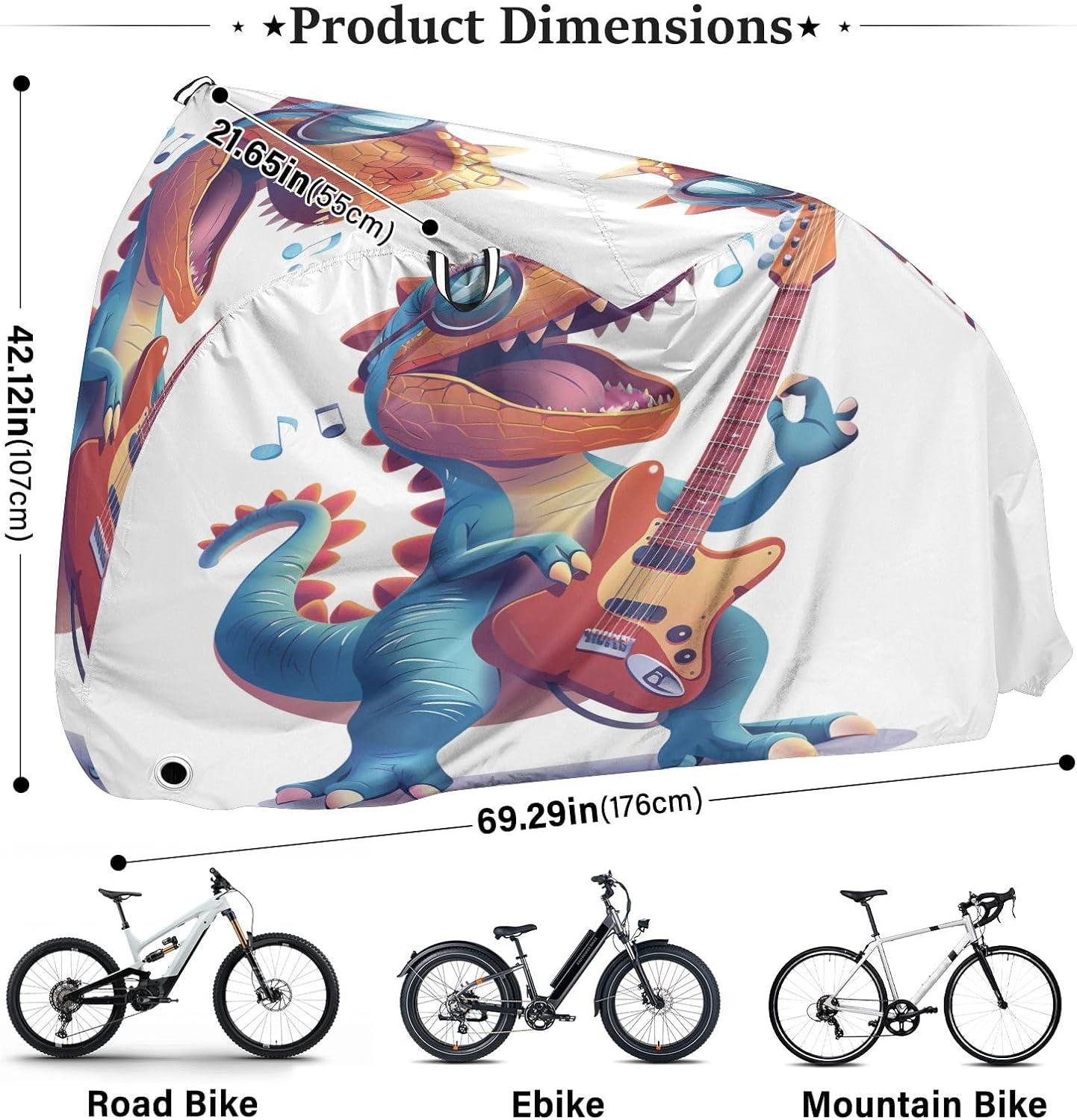 Protect your bicycle in style with our premium bike tarp, engineered for maximum defense against harsh elements. Unlike basic covers, we use specially engineered umbrella waterproof fabric - the same advanced material used in high-end rain umbrellas - delivering superior performance with unique visual appeal. Sun & Heat Defense Our fabric creates a physical cooling barrier that actively lowers your bike's temperature by: Blocking 95%+ harmful UV rays to prevent paint fading Providing exceptional shading & heat insulation (up to 20℉/11℃ reduction vs direct sun) Offering SPF 50+ equivalent protection for sensitive components Rain & Dust Protection Water-repellent coating causes rain to bead and roll off Tightly woven fabric acts as dustproof barrier for long-term storage Prevents moisture buildup with breathable side panels (prevents condensation) User-Focused Design LOCK ACCESS HOLE at front wheel enables secure locking without removing cover ADJUSTABLE BUCKLE STRAP at rear wheel anchors cover during strong winds Reflective safety strips on handles enhance nighttime visibility Ultra-lightweight (23 oz) folds into included pouch Unbeatable Aesthetics Choose from over 1,000 designer patterns - from sleek geometrics to vibrant nature motifs - transforming your bike into a street-style statement while competitors offer only solid colors.