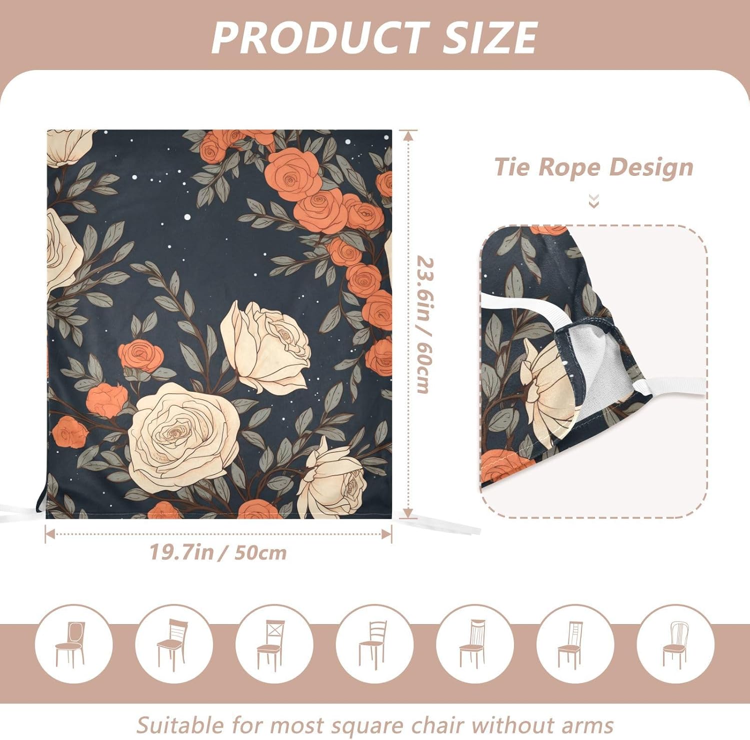 Chair Cover Material made of polyester,comfortable and soft to touch,reusable and suitable for long term use Features easy to install and remove, tie rope design at the bottom,machine washable Stylish Chair Decoration With beautiful pattern,it can be used for family party/ birthday party/wedding/ holiday party to add atmosphere, also can be used for chair decoration in living room, dorm, kitchen dining room,bedroom to bring protection to the chair while avoiding stains to dirty the chair back. Easy To Care Machine washable, Not washing with hot water, Not bleaching