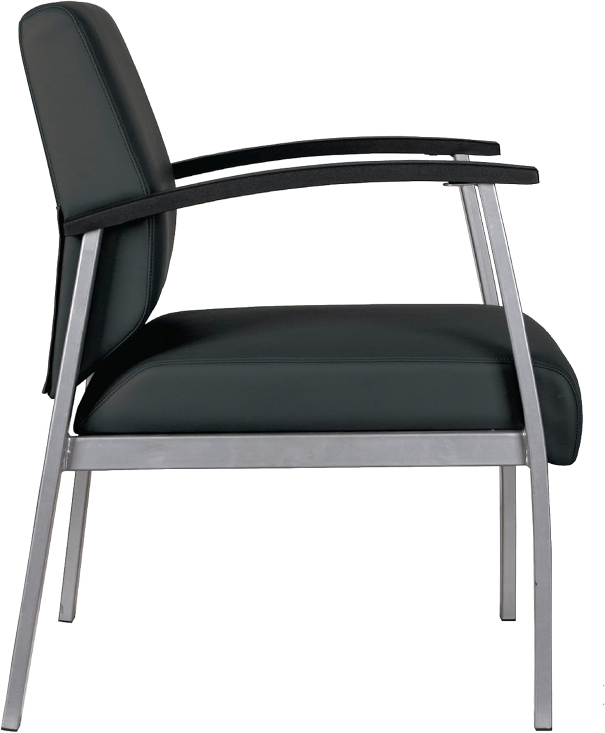 Stylish and flexible design is ideal for additional office seating and waiting areas. Thickly padded seat cushion with waterfall seat design relieves pressure points at the back of the knees. Visible clean-out area between the back and seat prevents dirt and debris build-up. Strong metal frame withstands heavy use and added durability and strength. Wall-saver leg design helps protect against wall damage. Polyurethane arms are both comfortable and long-lasting. Antimicrobial agent added to prevent the growth of germs on the upholstery surface.