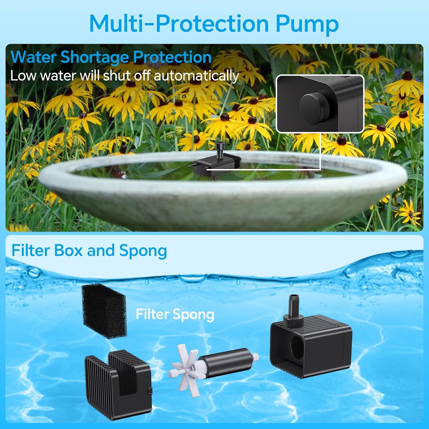 | Included Components | 9.8ft Cord, Nozzles & Rods, PVC Tubing, Solar Panel x1, Water Pump x1 |