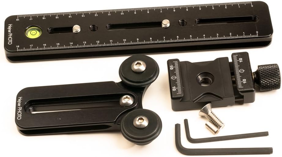8 inch lens support package with quick height adjustment includes a special 8 inch rail (G013-80), lens support bracket (LLSB), and 1.50 inch clamp (F61b). The clamp is mounted to the rail end with a single screw. To prevent the clamp from accidental rotation, a standard 5mm dowel pin is inserted into an opening on the end of the rail. The lens supporting bracket is mounted inside the clamp for quick height adjustment, useful when you are using multiple lenses with your camera. This setup can dramatically improve the stability of your camera/lens combo. Bracket Specifications: 3.75 inches long. 2.50 inches wide. Weight: 2.70 oz (76g). One captive style slot. Double-dovetail design allows for dual clamping surfaces. Can be used with various lenses. Rail Specifications: 8.00 inches long. 1.50 inches wide. 1/2 inch thick. Weight: 4.1 oz (115g). Engraved metric scale. 1/4-20 tapped hole in front for lens support or other accessories. Three captive style slots