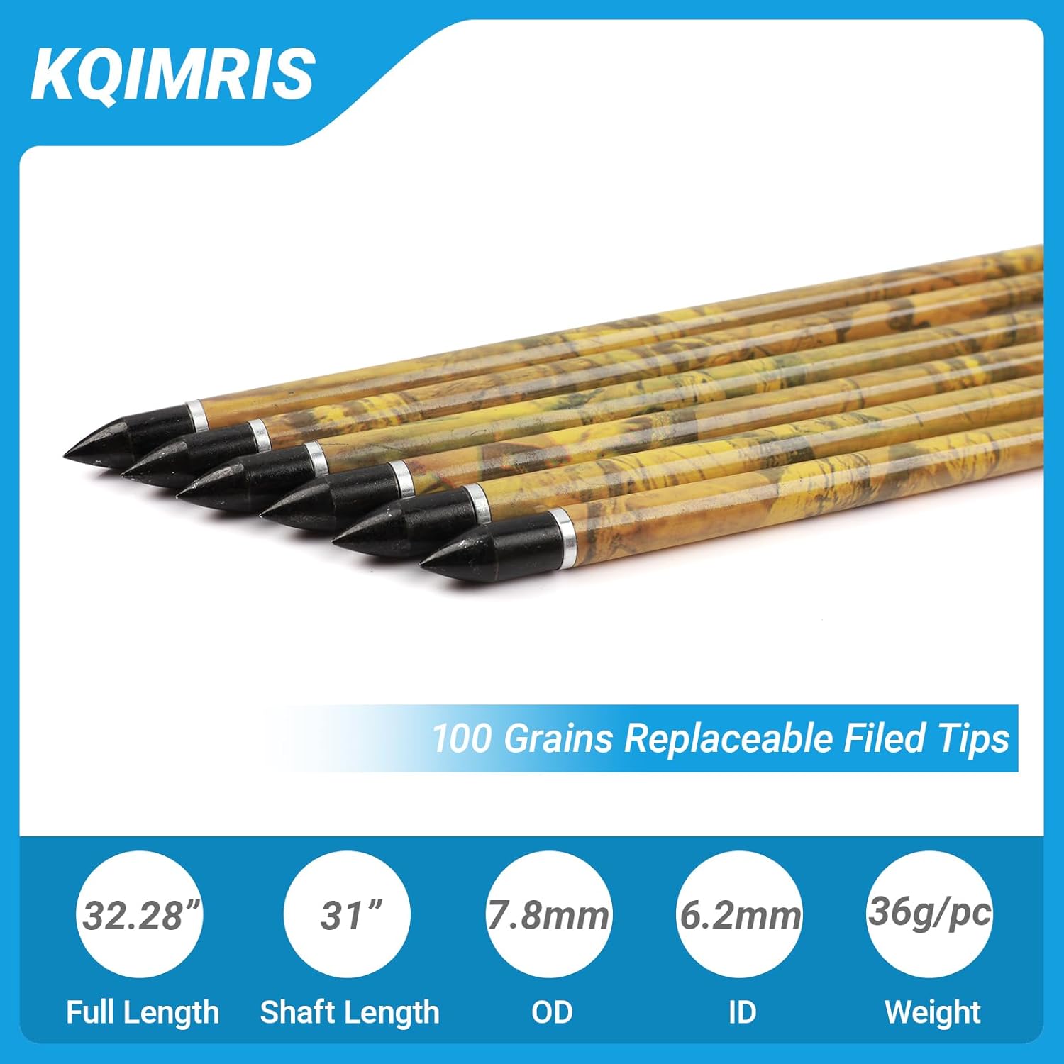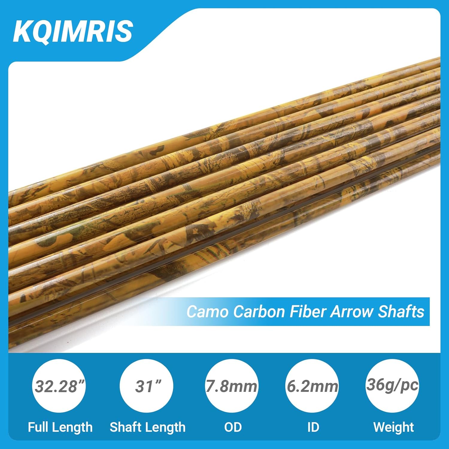 Specifications - Item Name: Carbon Arrows - Shaft Material: Carbon fiber - Full Length: 32.28"/82cm - Shaft Length: 30.7"/78cm - Shaft diameter: OD 0.307"(7.8 mm) ID 0.244"(6.2mm) - Net Weight: approx. 36g/pc - Arrow Spine: 500 - Arrow Points: 100 grains - Arrow Feathers : 5 inch striped turkey feather fletched - Arrow nocks: adjustable nocks, not fixed by glue - Usage: Fit for Compound Bow, Recurve bow and Traditional bow Package Contents: -12* carbon arrows Note: 1. Check for damage before each shooting 2. Please ensure there is no one in front of the target when archers shoot. 3. Please do not shot againt any hard things, like concrete wall or any hard substances, whick will damage the arrow.