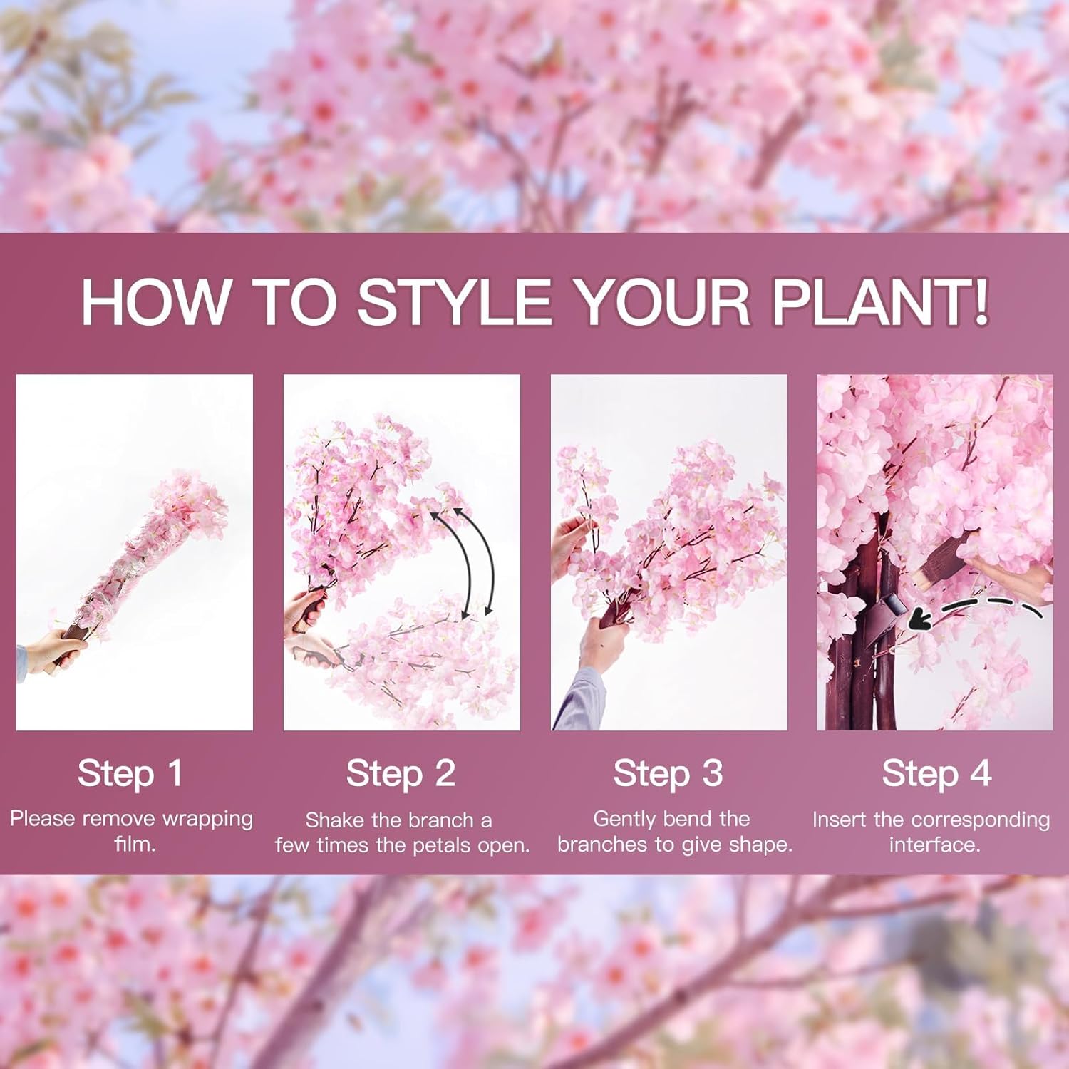 | Included Components | 1x Artificial Cherry Blossom Tree, 1x Fence, 1x Turf, 1x LED String Lights - Works with 3 AA Batteries (Battery NOT included), 20x Artificial Cherry Blossom Flowers |