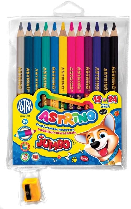 Discover the magic of drawing with ASTRINO Jumbo Colored Pencils! These unique double-sided colored pencils offer up to 24 different shades in 12 counts, allowing you to create more diverse and creative works. Colored pencils have a round shape that provides a comfortable grip for both right and left handed children. They are distinguished by their vivid colors and smooth drawing, and at the same time do not form dust or crumble during use. Thicker Jumbo size makes them perfect for little hands for better control and comfort when drawing. The set includes a pencil sharpener to keep pencils ready to use. It is an excellent choice for schoolchildren looking to develop their artistic passions. Colored pencils are ideal for both school and creative play at home.