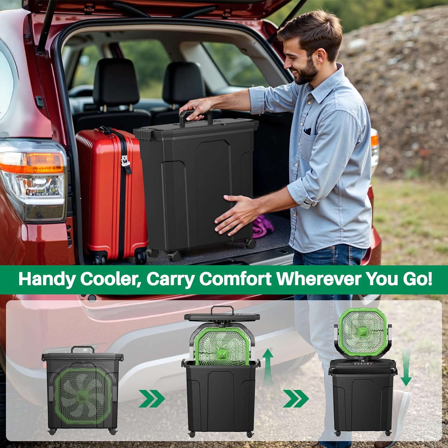 Ausic Portable Misting Fan, 12-inch, 20L Bucket, 30000mAh Rechargeable Battery