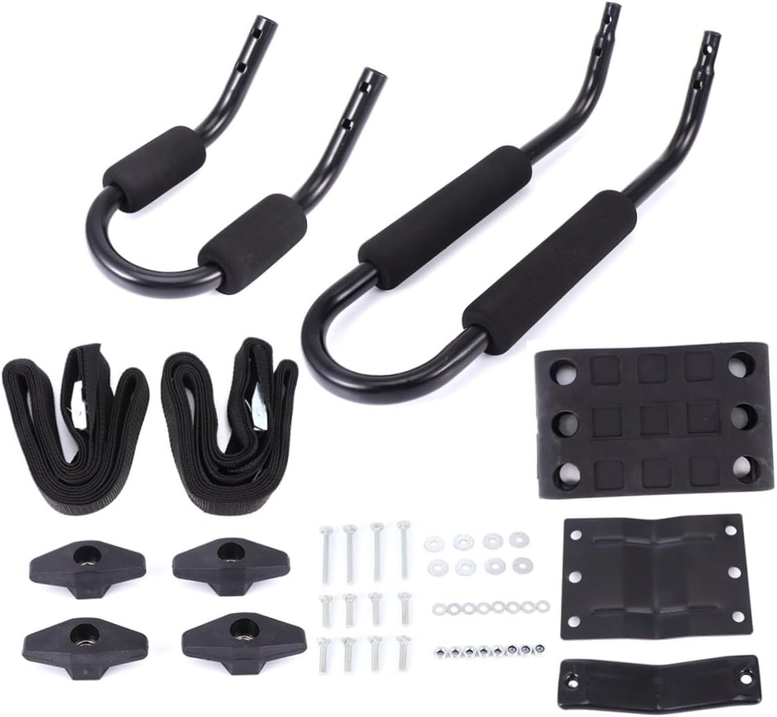 Package List 2 x storage racks Features - Material: aluminium and foam - Color: Black -Product Info:Roof luggage rack - Size: About 49x17x10cm/19.29x6.69x3.94inch - They have the good fixing effect roof rack - frames for you kayak roof rack foldable - Aluminium and materials are durable and safe - Waterproof and rust-proof kayak holder roof rack - Easy to install kayak racksGoods Descriptionfoldable kayak roof rack they are easy to clean and use.outdoor kayak storage rack designed for Canoe and Kayak, car etc.kayak racks they have the good workmanship details, you will use them for a long time.soft kayak roof rack These items are some roof frame which is made of aluminium and for durable and safe use