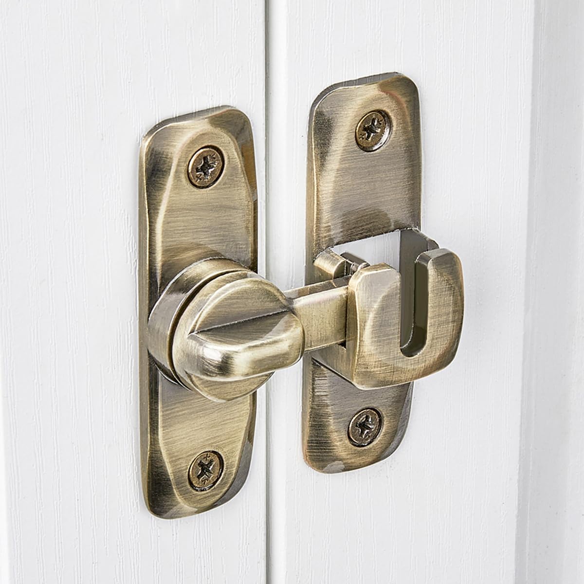 "【Upgraded Door Lock】 The 90/180 Degree barn door lock can be mounted at 90° right angles, also can be mounted at 180 degree angles for even more space-saving use. Ideal for family bedrooms, doors, bathrooms, gates, sheds, cabins, windows, cabinets, kitchens, offices, barn door latch and more. 【Stronger & Long-lasting Material】 The 90/180 Degree barn door lock is constructed of high quality solid zinc alloy and coated with multi-layer coating covering the surface, which can effectively isolate oxygen in the air to be corrosion-resistant, ensuring long-lasting and reliability, can be used for a long time. 【Application】 The door latch is suitable for most doors. It is suitable for bedroom, balcony, garage, window, barn, sliding door, kitchen, bathroom, cabinet, drawer, pet lock, etc. The barn door lock is a safety measure for your family, preventing unwanted entry and keeping children and pets safely inside. 【Easy and fast installation】 The door latch is suitable for left or right installation, and installation at an angle of 90° and 180°. Simply fit the door latch lock to your door frame, mark the height and mounting holes and mount to your door jam with the supplied screws, Note: you need to pay attention to the distance of the rotation card, if the distance is wrong, it will not work properly. 【Package List】 1 * Barn Door Lock 4 * Screws"