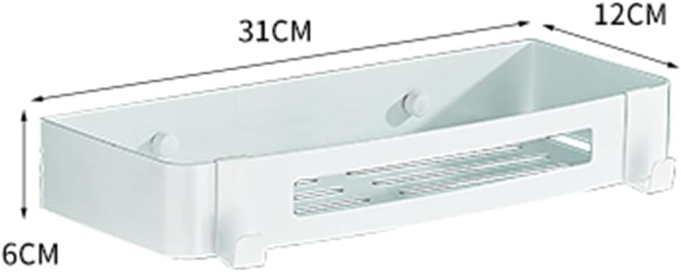 bathroom shelfProduct name: Wall-mounted shower rackcolor: WhiteMaterial: 304 stainless steelSize: 31x12x6cm2 installation methods: no punching (no nail glue) / punching (screws)Scope of supply: 1x self-adhesive shower shelfFunction:No need to drill, no need to hire professionals to drill and damage the wall.It can store soap, shampoo, facial cleanser, lotion, brushes, etc. There are two hooks at the bottom for hanging towels or bath balls.Suitable for all kinds of smooth walls-ceramic tiles, glass, frosted glass, smooth wood, marble.Punch-free installation steps:1. Wipe the wall with a towel2. Apply nail-free glue3. Paste on the wall4. Post auxiliary stickers5. Let stand for 48 hours6. Installation is completeNotice:1. Decorations are not included in the scope of supply.2. Before installing the equipment correctly, do not hang fragile or valuable items.