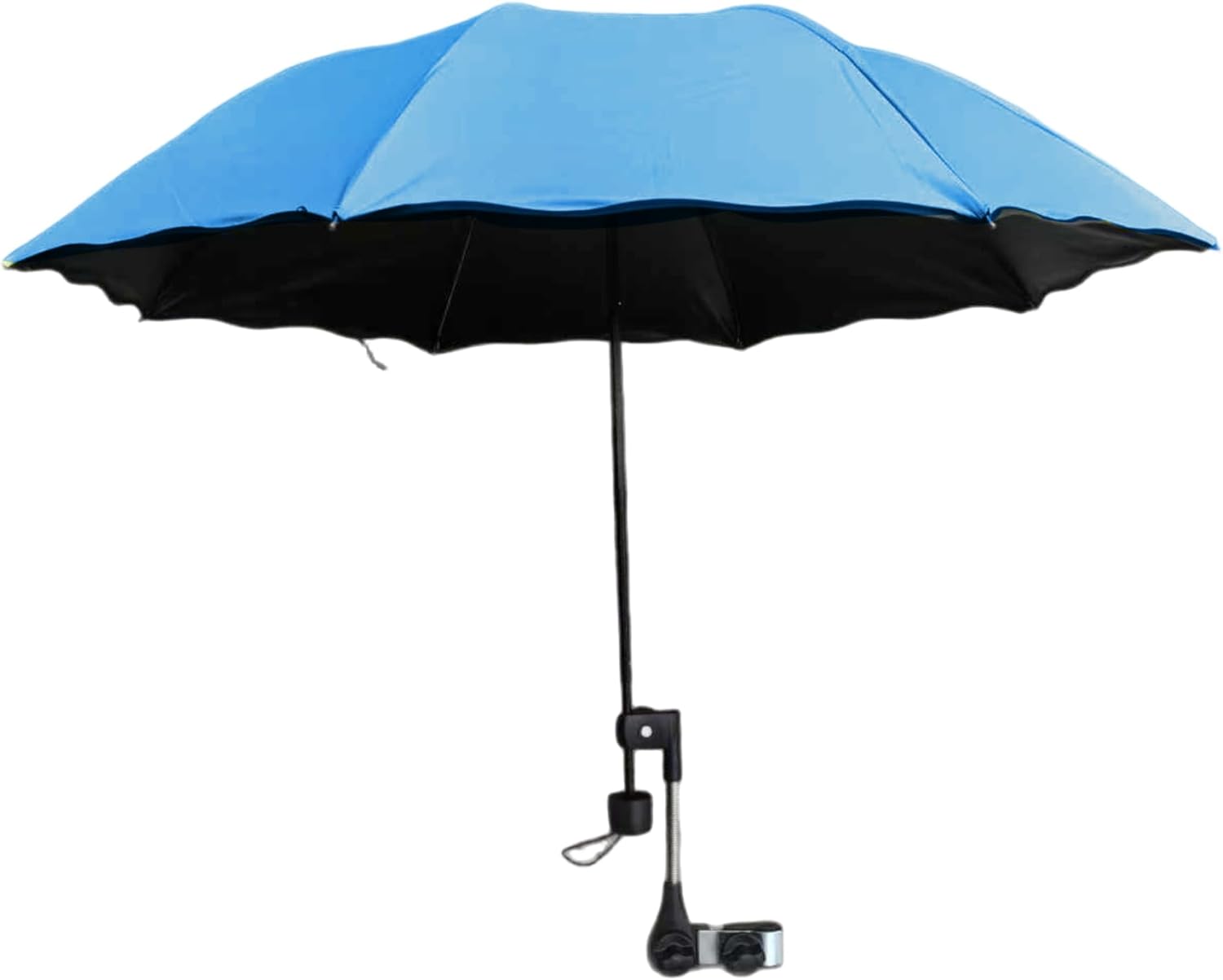 Description: Chair Umbrella with Clamp Adjustable combines portability, UV protection, and waterproof durability, making it the ideal accessory for beach chairs, camping, patio seating, wheelchairs, strollers, and golf carts; its secure clamp fits various frames and can be adjusted for optimal sun coverage, while the lightweight, folding design ensures ease of transport and storage, providing versatile, reliable shade and comfort in any outdoor setting. Features:. -Color: Sky Blue. -Material: Polyester fiber. -Size: Diameter 93 cm/36.61 inch. Fold size: 4x24 cm/1.57x9.45 inch. Note:Manual measurement, please allow slight errors on size.The colors may exist slight difference due to different screens. Package Including 1 * Chair Umbrella1 * Clamp