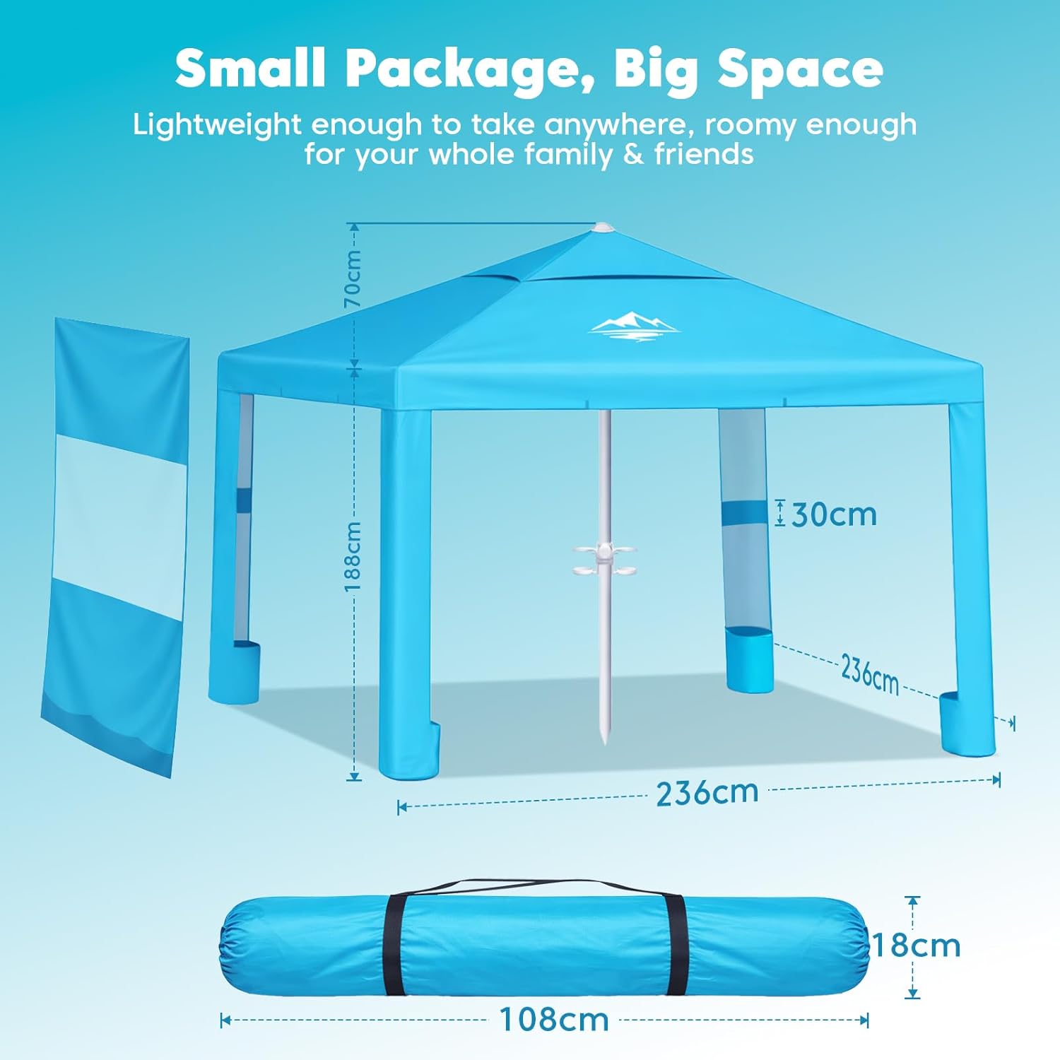 | Coverage | UPF 50+ Sun Protection with Removable Side Walls for Rain and Wind Protection |