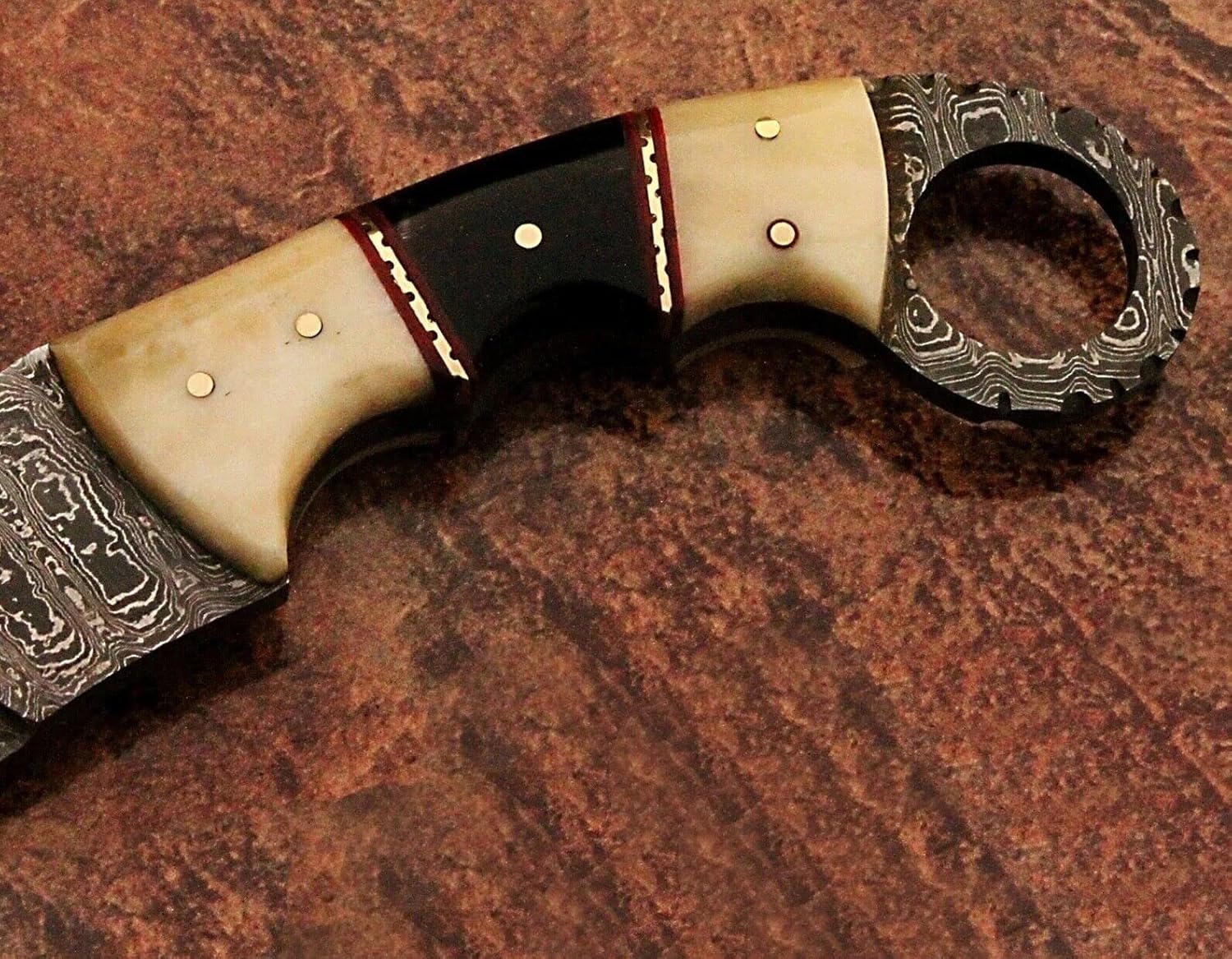 Beautiful handmade Damascus karambit knife handle made of camel bone and buffalo horn