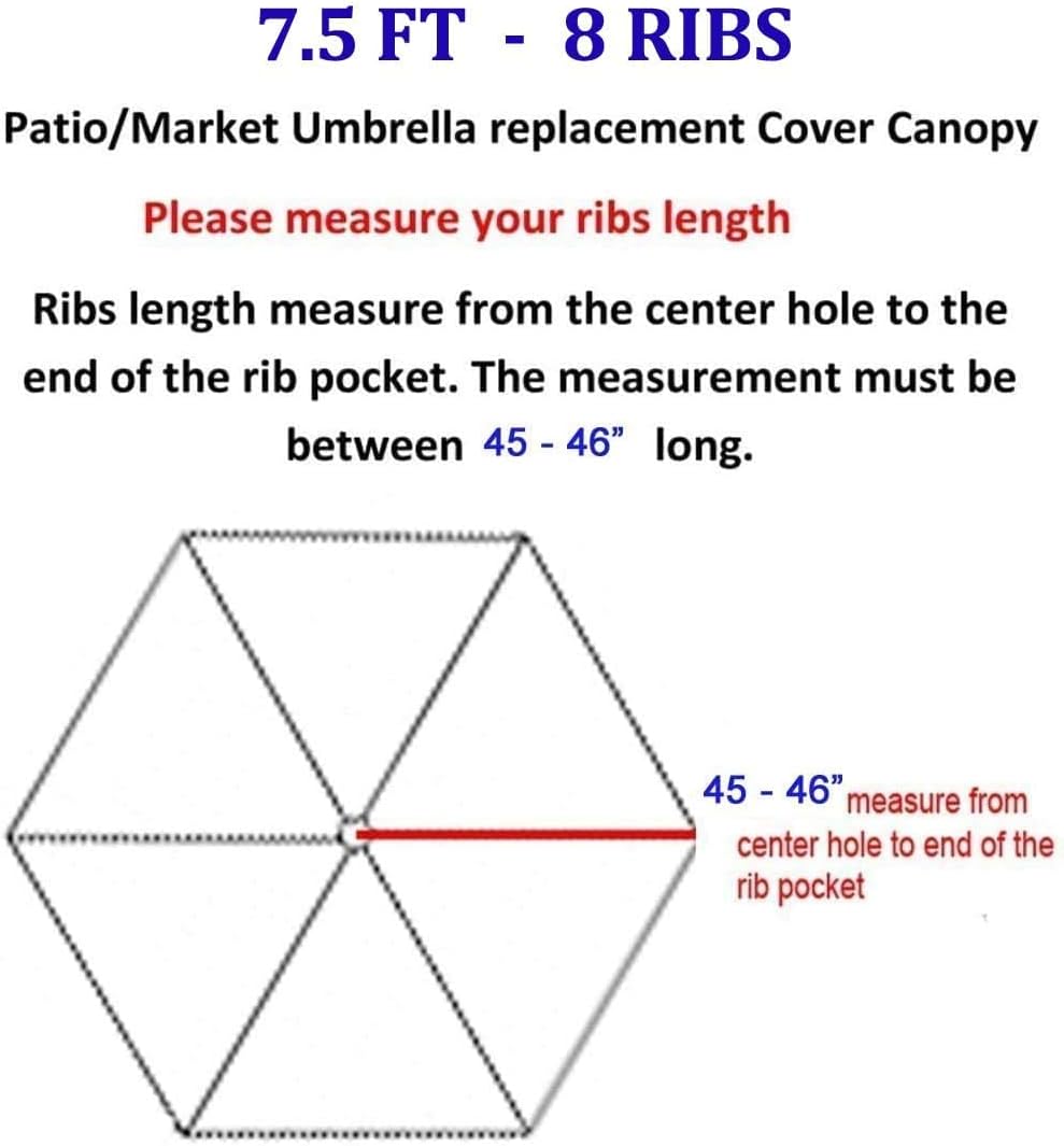 Lake Blue polyester canopy replacement for 8-rib umbrellas, fitting ribs measuring 51" to 53". Ensure a perfect fit by checking your ribs before purchase. This is a canopy-only replacement, featuring air-vented polyester fabric.