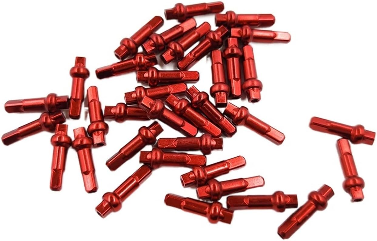 Material:Alloy/BrassLength: 14.4mm/16mm/18mmGauge: 14Thread: FG 2.3 (14G)Color: Black/RedQuantity: 64pcs or 100pcs