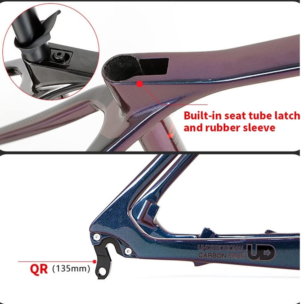 bike Carbon Fiber Frame 27.5er 29er Hardtail Mountain Bike Frame 15''/17''/19'' Internal Routing Disc Brake Frame QR 135mm XC AMName : bike bike frameMaterial: Carbon fiber T900Technology:EPS technology,discoloration,built-in seat tube latch and rubber sleeve.Frame Size:15''/17''/19''For wheel:27.5''/29'' wheelsBrake: disc brake Rear Axle Spacing: 135mm quick release axelFit for Tire:max for 2.25'' TiresCable : internal routingLevel: XC, AMHeadset:42*52mm tapered headsetBottom Bracket:BB92*41 press-in bottom bracketWeight: about 1390g Package Contents: Frame + Tail hookNote: Please check if the size of bike frame is correct before purchasing.Service:If you have any product and service problems, please contact us and we will reply with you within 24 hours.