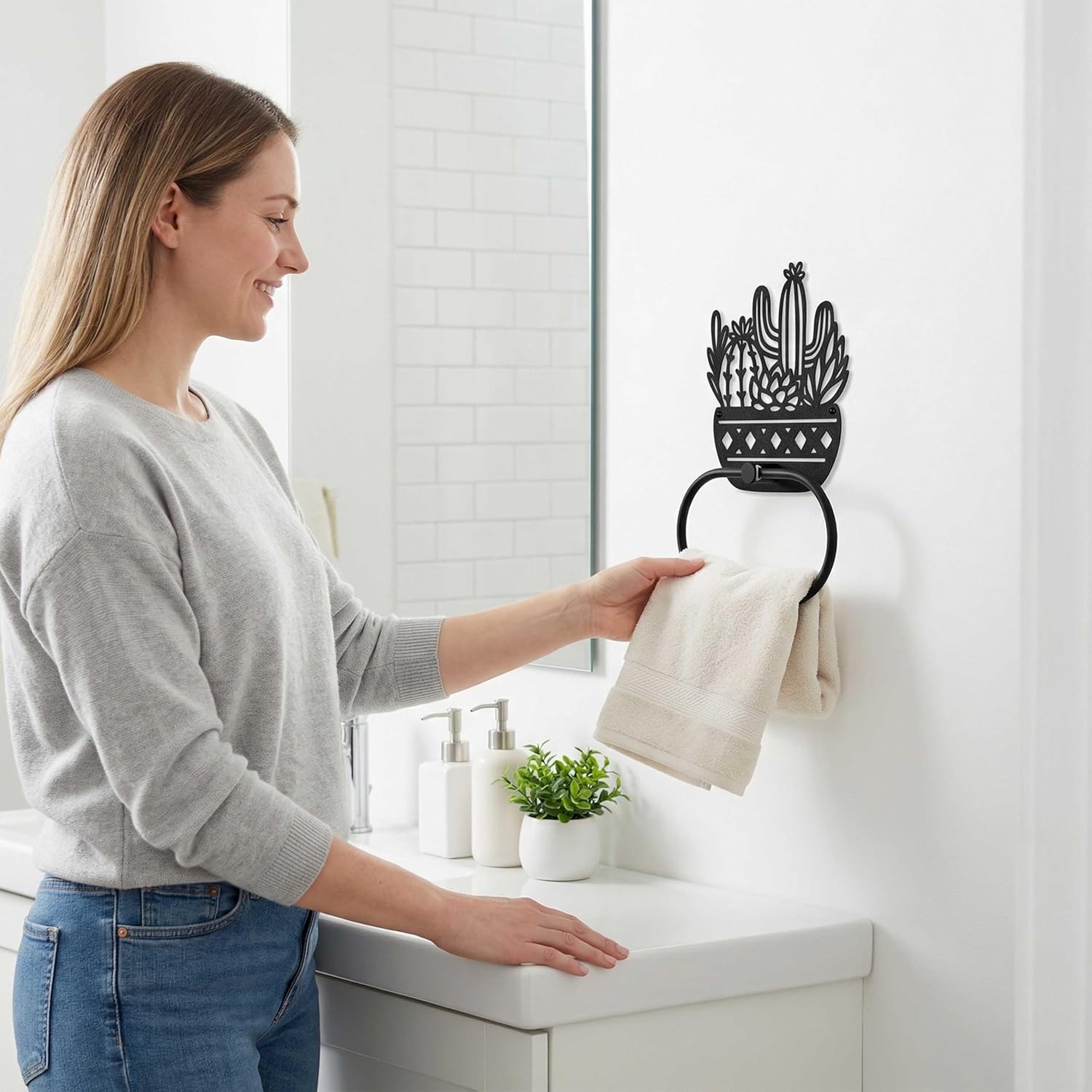 D E S C R I P T I O N : LumDecor Black Metal Cactus Wall Mounted Towel Ring, Potted Plant Design Decor Accessories, Artistic Plant Towel Holder Decorative Gift for Cactus Lovers, Decorations for Home Kitchen Restroom Office. S P E C I F I C A T I O N S : - Name: LumDecor Black Metal Cactus Wall Mounted Towel Ring, Potted Plant Design Decor Accessories, Artistic Plant Towel Holder Decorative Gift for Cactus Lovers, Decorations for Home Kitchen Restroom Office. - Main color: Black - Product size: approx 6.69 × 3.94 × 0.04 in, 7.87 × 4.92 in - Product material: High-quality Metal P A C K A G E I N C L U D E D : 1 * Black Metal Cactus Wall Mounted Towel Ring W A R M P R O M P T : 1. Due to the different monitor and light effect, the actual color may be a little different from the pictures. 2. If you have any questions please contact us. We will glad to help you. About Us: At LumDecor, we create thoughtful everyday products to make home life effortless. Our Black Metal Cactus Wall Mounted Towel Ring blend innovative design with quality materials for easy, worry-free cleaning. We aim to add delight to your life through considerate little touches.