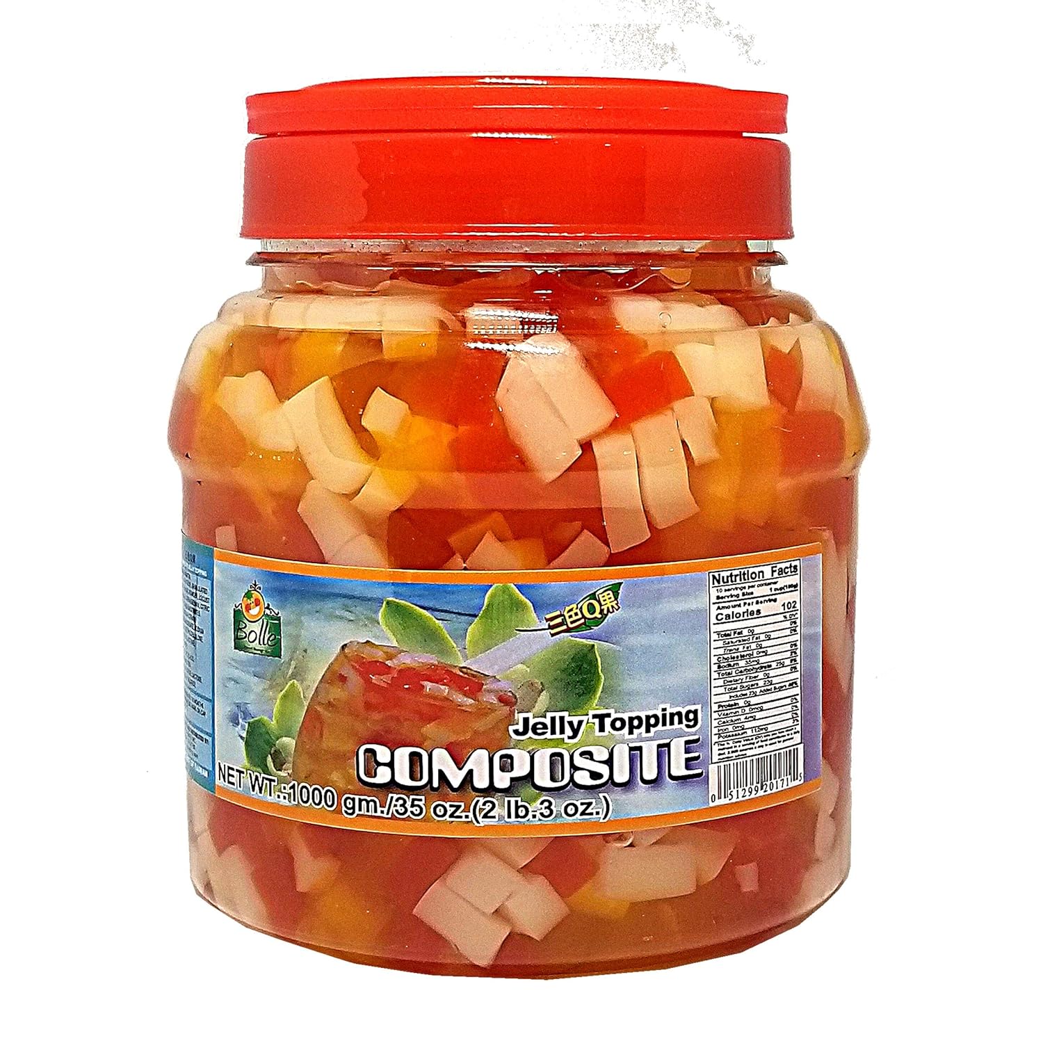 Composite Jelly Topping by Bolle, assorted flavors in one (Mango, Strawberry, and Yogurt) Great for ice cream, frozen yogurt, shaved ice toppings. Excellent as an add-on ingredient to your iced teas or bubble teas, desserts, and more! The container has a lid with handle for easy handling and storage and is reusable. As a bonus, you will also receive 1 colorful refrigerator magnet. It comes in different colors. Color receive will be random.
