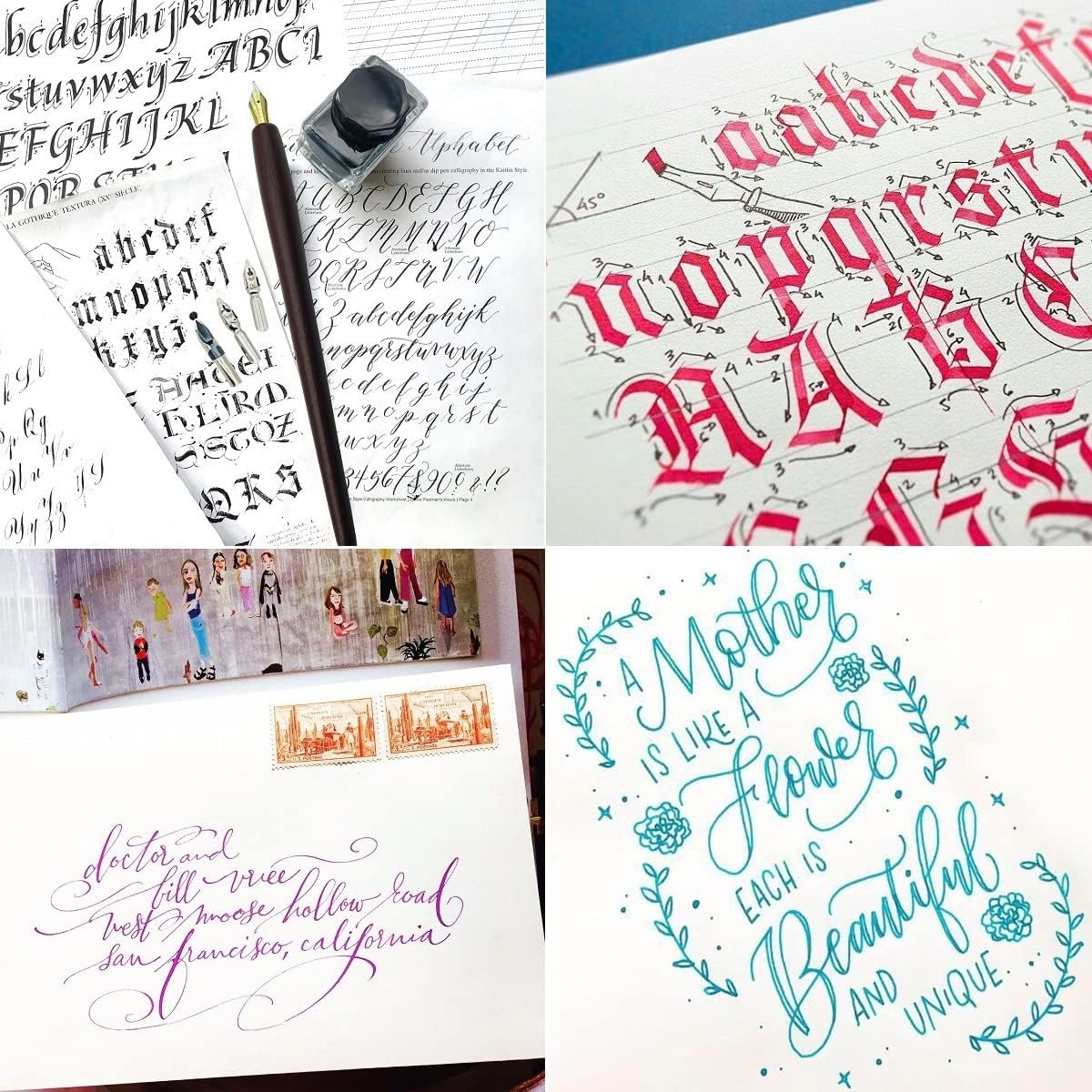 Package Includes:- 1 x Wooden pen- 7 x Colors ink bottles- 2 x Golden nibs- 10 x Stainless steel nibs- 1 x Antique brass pen holder- 1 x Introduction booklet- 1 x Luxury black gift box.Great Ideas for a Gift Exchange:Nice calligraphy kit is a vintage gift box for festival.There is so much to choose from, sparking countless creative ideas:7 colors water-soluble ink bottles, high-quality ink is bright.12 calligraphy nibs finely-crafted for both traditional and modern calligraphy styles.Design unique artistic works:Practice countless calligraphy and hand lettering styles with the different nibs.You can instantly transform a calligraphy style by writing with flexible nibs.As a lover or beginner, It is necessary to practice more.Dip Pen General Tips: At first, you may very well find that these ‘wide nibs’ can be a little challenging and frustrating … the most common problem is getting the ink to flow steadily from the nib. Here are a few ‘dip pen general tips’ to help you get the hang of mastering this fine instrument faster: For beginners, we recommend that you use ‘Black Ink’ to begin your first prcatice. Black ink is more viscous. Because these nibs are relatively wide, you need to dip as much ink as possible. Try to adjust the writing angle and pay attention to keep the correct angle of the pen. Then you need to vary the pressure you are applying on the nib. Please be more patient and practice more. Once the ink stops flowing smoothly, dip the nib fully into a jar of water. wipe-off the ink on nib with paper towel when you have finished.