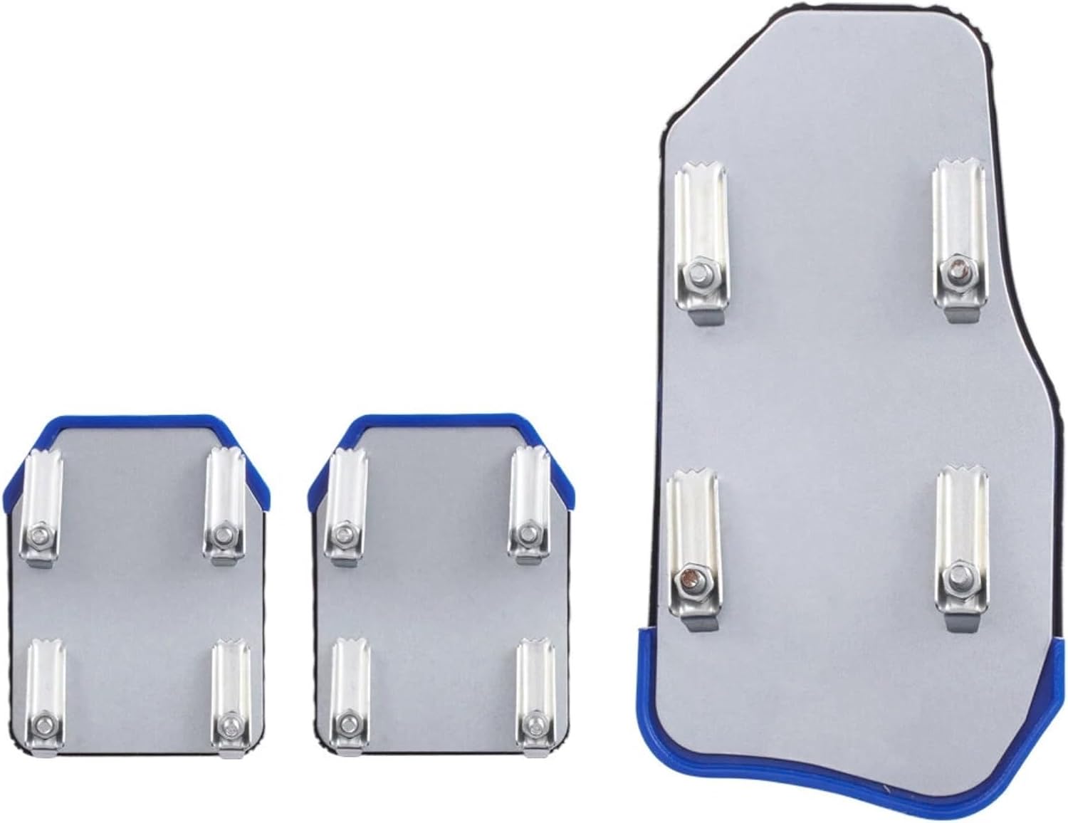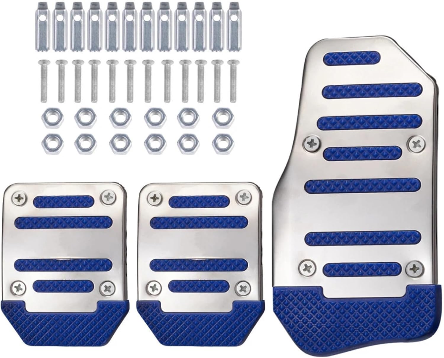 Specifications:Name: Car brake pedal padMaterial: Aluminum alloy + PVCColor: Blue, BlackSize:Throttle pedal pad cover size: 15.7*8cm/ 6.2*3.1 inches (length*width)Brake/clutch pedal pad cover size: 9*6.6cm/ 3.5*2.6 inches (length*width)Accessory type: Direct replacementInstallation: No drilling required, direct installationPackage includes: 3*Car brake pedal pads