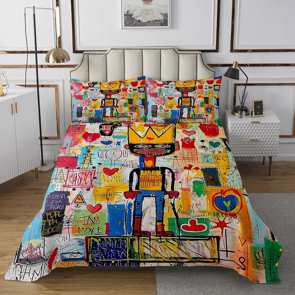 Best blessings: Makeover your bedrooms every season with our bedspread sets. Perfect item for your room,girls boys youth room,master bedroom. Size information: 1 Twin size quilted bedspread 68" W X 90" L and 1 quilted pillow sham 30" W X 20" L . 1 Queen size quilted bedspread 90" W X 90" L and 2 quilted pillow shams 30" W X 20" L . 1 King size quilted bedspread 104" W X 90" L and 2 quilted pillow shams 36" W X 20" L . Useful and practical: A luxurious product for homes,dorm rooms,hotels,guest rooms.Practical to use for being polyester,feels like cotton which is super soft and breathable. No chemicals used,no dye substance harming the health of you or your family. Unique design: Vivid colors won't fade thanks to new 3d digital printing methods.These unique designs match well with various color palettes of your rugs,curtains,headboard,furniture,and all other decor accessories. Personalized: As manufacturers of digital printed home textiles,we follow current trends and bring you the latest home fashion. Note: The bedspread and pillow shams are printed on the front side only,the back of them are white colored.Comforter is not included in the set.