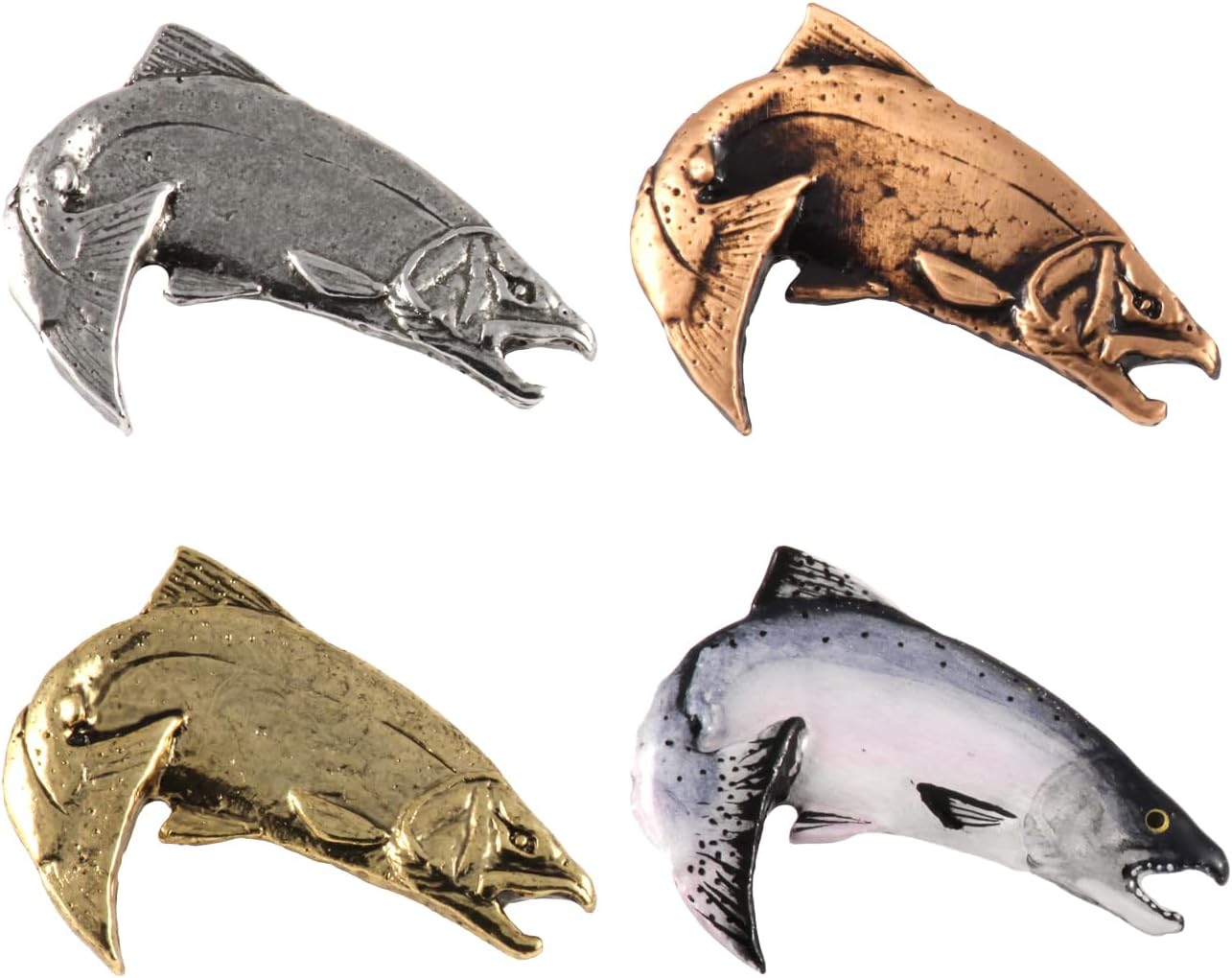Chinook Salmon Leaping, King Salmon, Pewter, Lapel, Hat, Pins, Brooch, Brooches, Jewelry, Gift, Handmade in the USA, 200 Fish Designs Available. F043Z