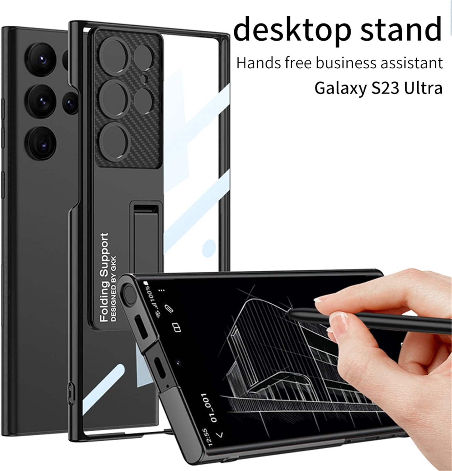 Designed for Samsung Galaxy S23 Ultra/S23 Plus/S23. 100% brand new & portable & durable & fun and the best choice.【Material】:New hard PC material Advanced craftsmanship【Product Highlights】:✨ Made of 100% high light-transmitting molecular material which beautifully show its original color at same time to protect it. 4K clarity offers a crystal-like transparency so you can enjoy the brilliant beauty of your Galaxy.✪ The back is designed to spread out heat caused by your phone. At the same time, the distribution of heat is doubled so that the battery life can be extended.〓 The integrated kickstand not only allows your Galaxy to stand firm at all times, it doesn't add any extra bulk to the case. Free your hands and enjoy your life!▬ Slim like bare phone feel, ergonomic design & smooth touch and show off the outstanding beauty of the phone as you like.► The raised screen bezel and all-inclusive lens frame design help protect your screen and camera from scratches.📶 Cases are mold and test with real Galaxy, key interface 1:1 Precise cutouts and snug fit, not obstruct the signal.📦Package Contents📦1 X Phone Case❤ If you have any questions about our products, please feel free to contact us, we will work with you to solve any problems you encounter until you are satisfied.