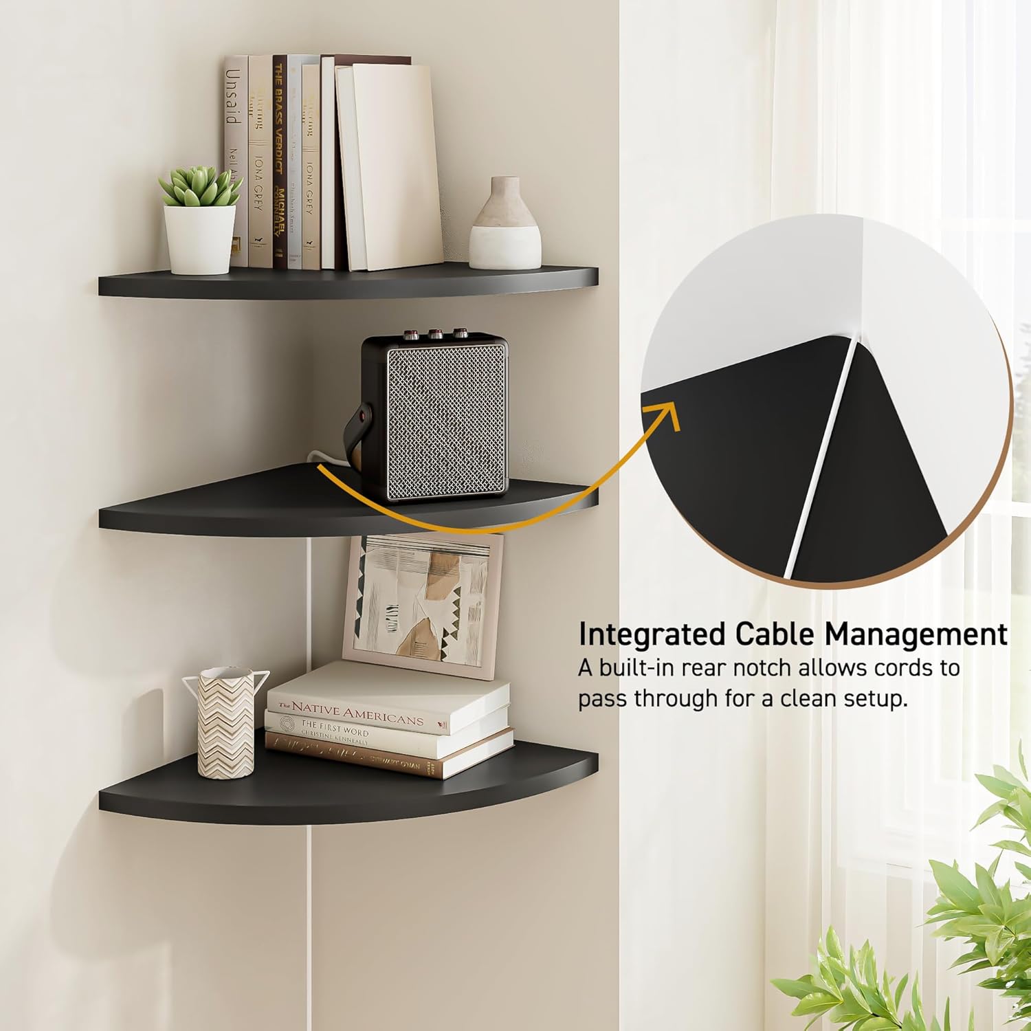 | Additional Features | Indoor for saving space storage littler items or plants, wood, For 90 Degree Wall, plant shelf ,corner shelf, with wire hole |