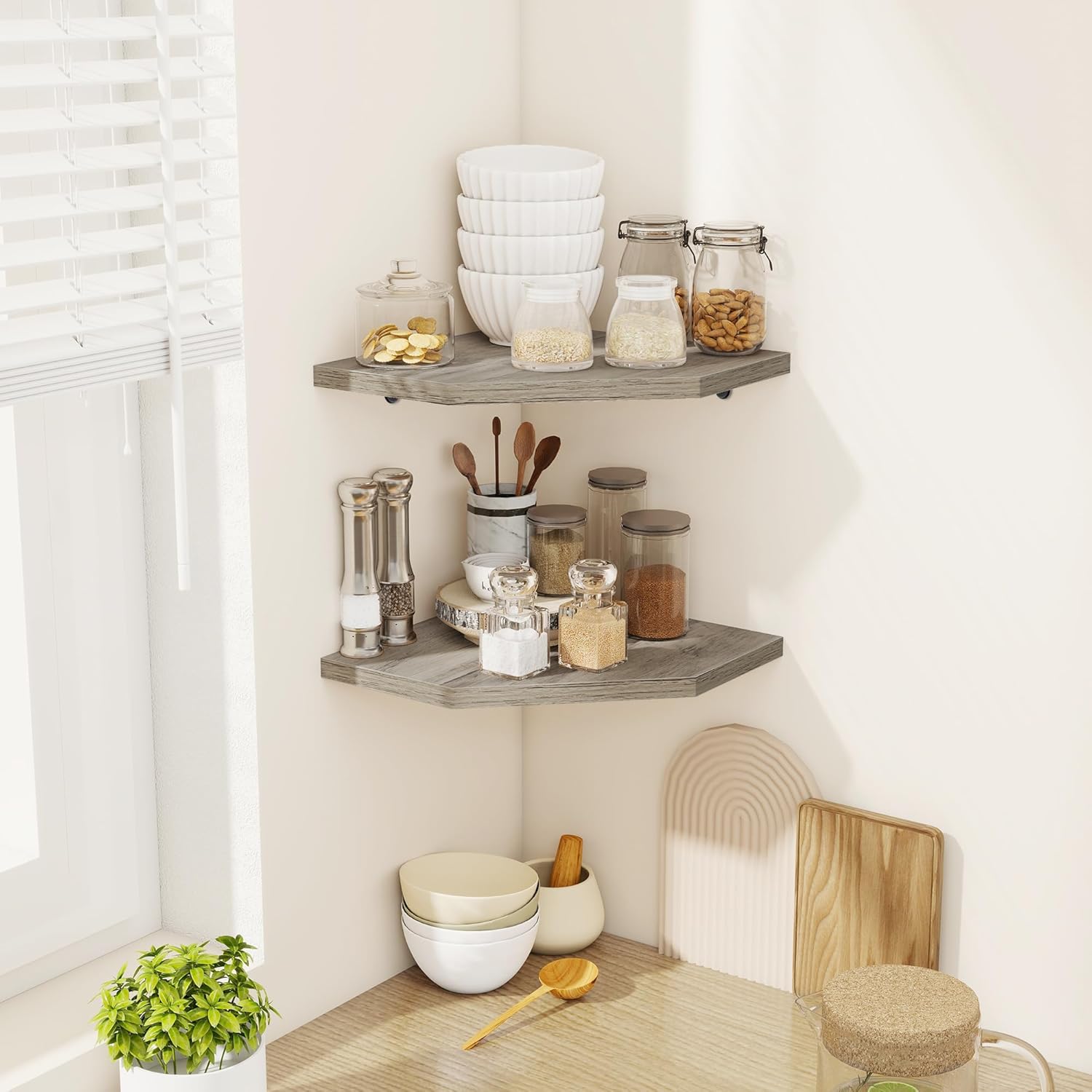 | Included Components | 2x Wood Corner Shelves, Complete Screw Kit, Hidden Mounting Brackets, Step-by-Step Guide |
