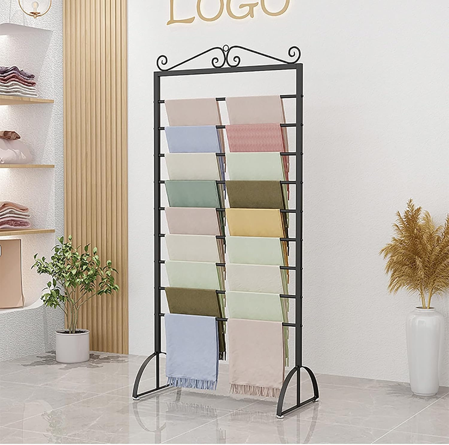 Description:This multifunction rack is an excellent choice for home, store for all types of items! A metal finish gives the rack a polished look while durable construction ensures that you won't have to deal with a rack that won't last.Specifications:Material: Metal SteelColor: Gold , Black , WhiteStyle; Modern Size: Tall: 175cm/68.9in; Width: 40cm/15.7in; Length: 45cm/17.7in; 70cm/27.5in; 90cm/35.4inMulti-Purpose: Suitable for scarf, silk scarf, belts, pants, etcScenes: Home, clothing store, apartments, hotels, closets, etcFeatures:Heavy weighted base for stability.The scarf rack organizer is made of the strong steel with a durable rust-resistant finish.All tools included. Follow the step by step instruction to assemble effortlessly.universal standing rack fits along a wall, in a corner, or anywhere you need smart organization.Package Includes:1 x Scarf RackNote:There may be an error of 1-3 cm due to manual measurement.There may be chromatic aberration due to the difference between the recording lamp and the display. Please refer to the actual product.